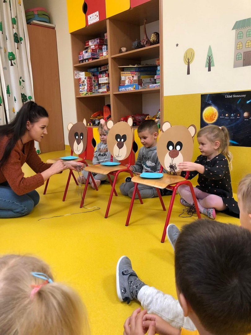 Dzieci zostały zaproszone do wspólnej zabawy w misiowej krainie. Poznały historię święta, wspólnie recytowały wiersze o misiach, bawiły się przy piosenkach: „Dwa malutkie misie”, „Jadą, jadą misie”. Dla dzieci przygotowano wiele atrakcji: zabawy ruchowe, plastyczne, konkursy, quizy, zgadywanki, śpiewanie piosenek, misiowe tańce oraz fotobudka.