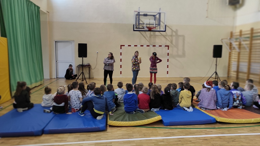 8 grudnia odbyły się 3 interaktywne spektakle „W świecie emocji”, w których brali aktywny udział uczniowie klas 0-III. Spektakle zrealizowane dzięki funduszom Fundacji Świętego Mikołaja, prowadzone przez Stowarzyszenie Praktyków Dramy Stop-Klatka.