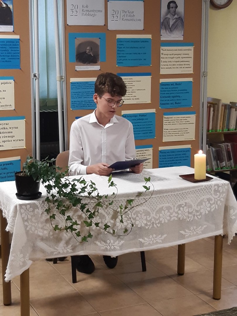 29 listopada dwójka uczniów z naszej szkoły wzięła udział w Konkursie Pięknego Czytania „W kręgu prozy i poezji romantyzmu” organizowanym przez Bibliotekę Pedagogiczną w Wyszkowie. Maciej Długołęcki z kl. VIIIb zaprezentował fragment Balladyny Juliusza Słowackiego, a Magdalena Borczon z kl. VI bajkę Adama Mickiewicza „Chłop i żmija”. Uczniom nie udało się stanąć na podium, ale spotkanie było dla nich cennym doświadczeniem.