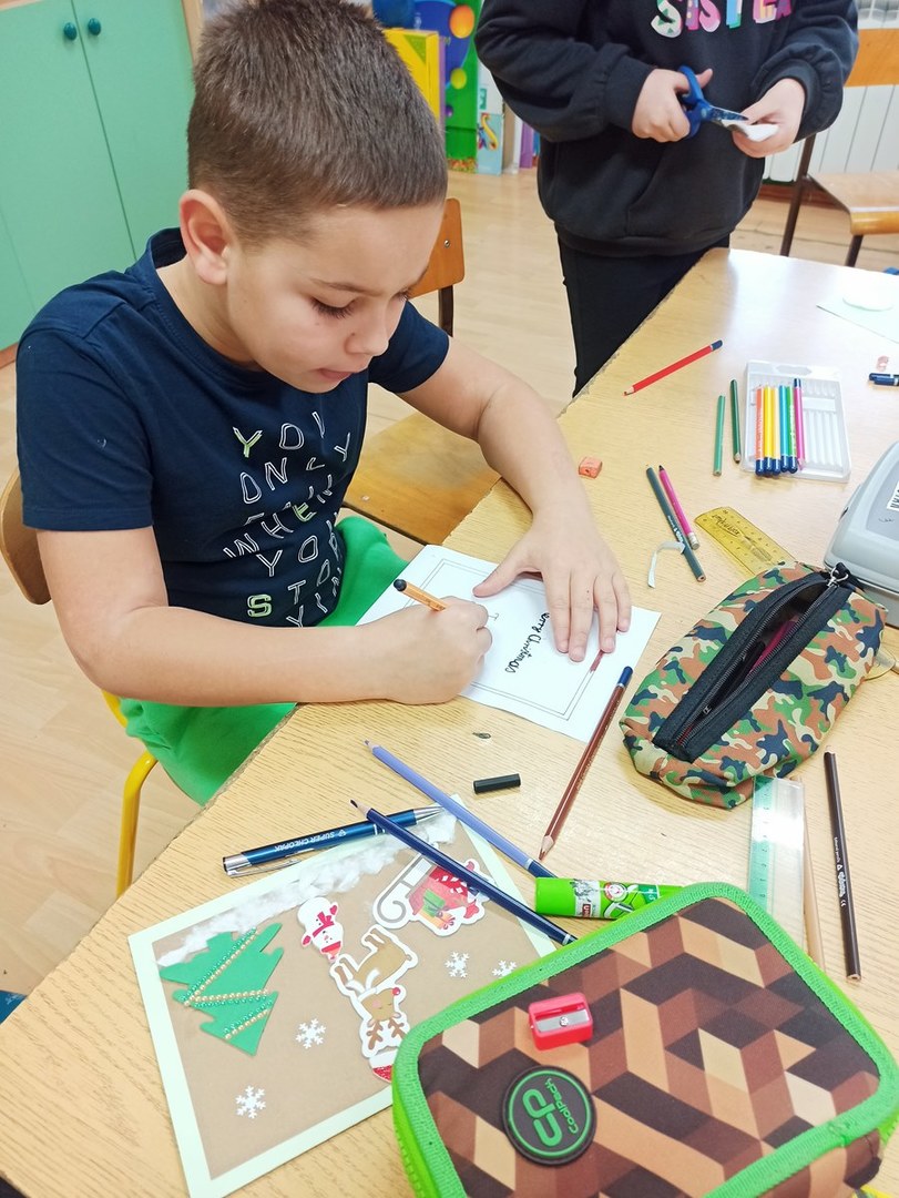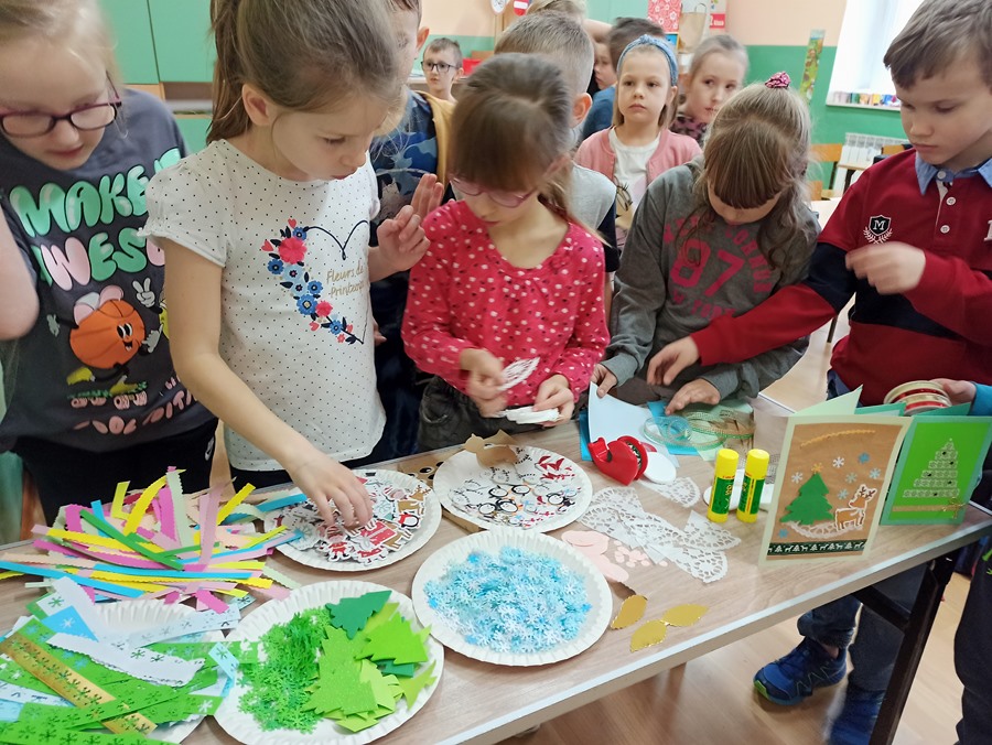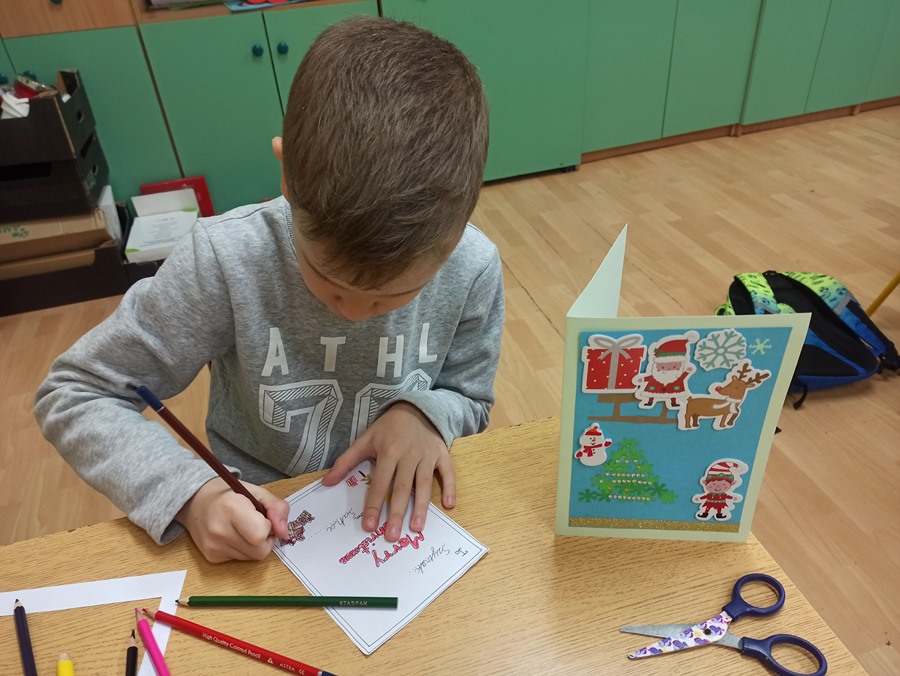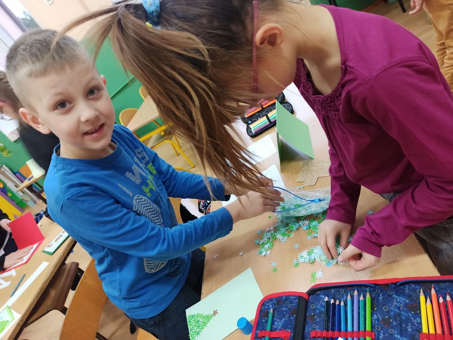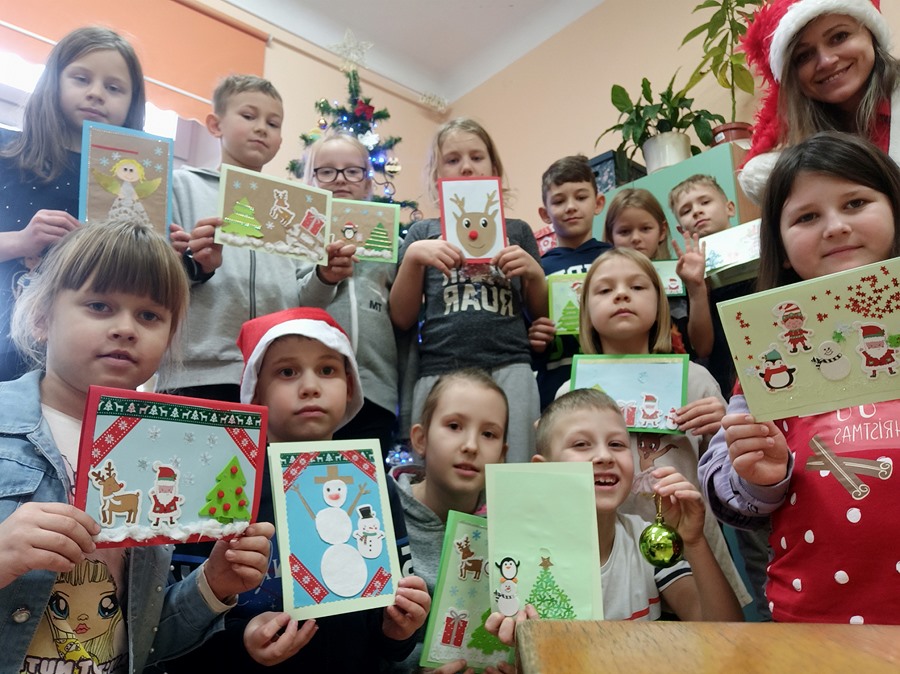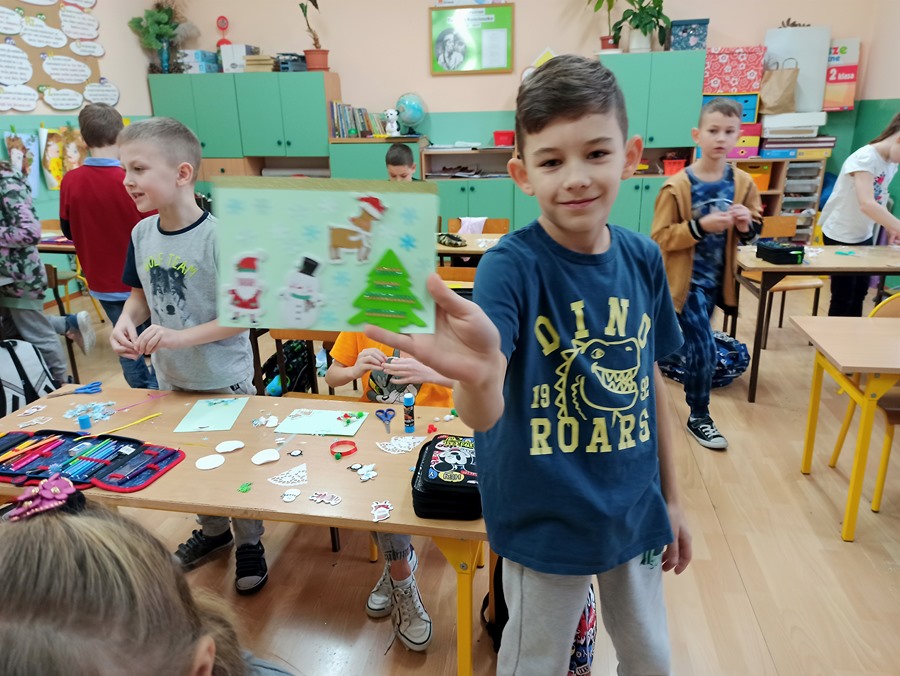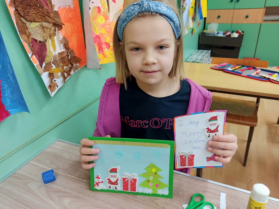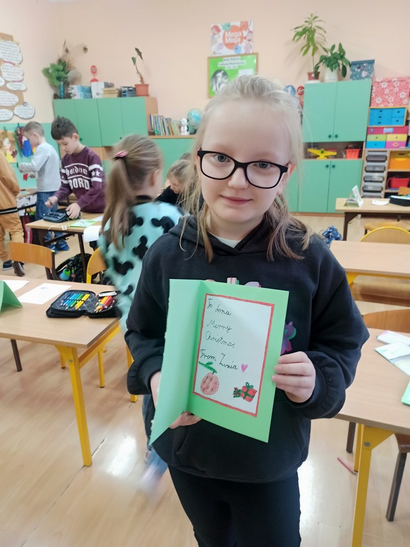 Z okazji zbliżających się Świąt Bożego Narodzenia klasy Ia i IIa wzięły udział w wymianie kartek świątecznych. Własnoręcznie wykonane prace wraz z życzeniami w języku angielskim trafiły do uczniów z innych szkół. Ta wymiana pozwoliła nie tylko na kultywowanie tradycji świątecznych, ale również umożliwiła współpracę i nawiązanie nowych kontaktów.