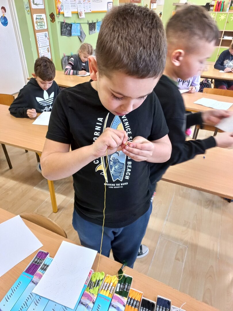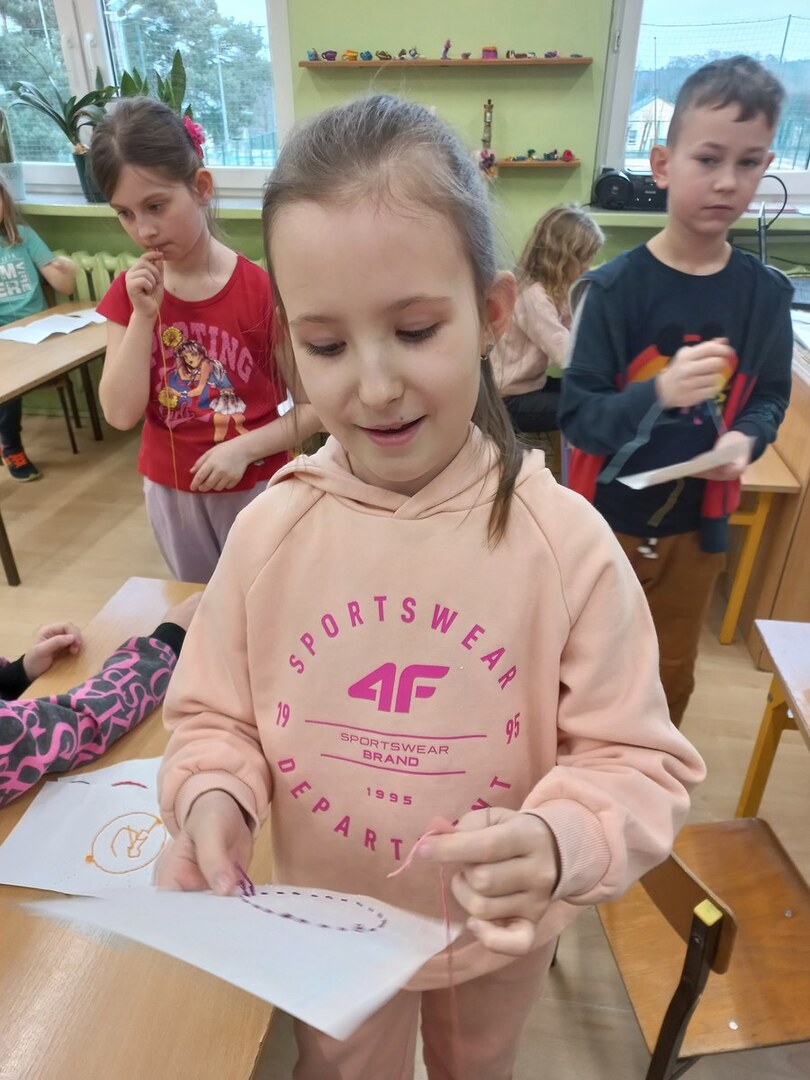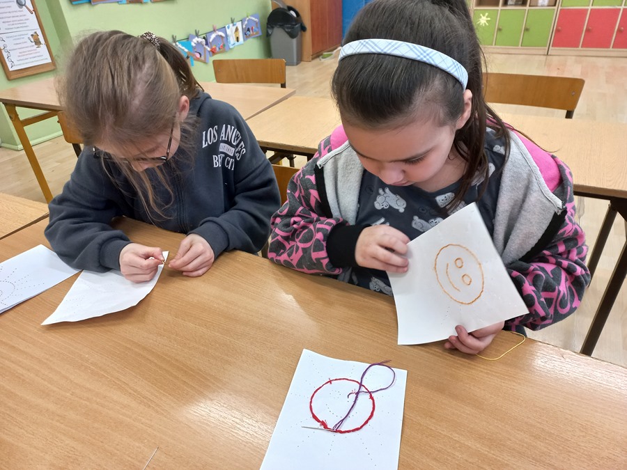 Nauka szycia to nic trudnego, o czym się przekonali uczniowie koła techniczno - kulinarnego klas I-III. Nie potrzeba metrów materiału, dziesiątek kolorów nici, a także setek przyrządów. Na początek wystarczy igła, nitka, kartka papieru, niewielka pomoc osoby dorosłej oraz głowa pełna pomysłów.