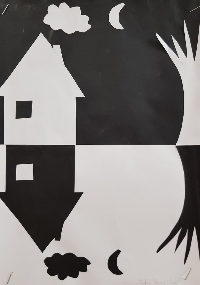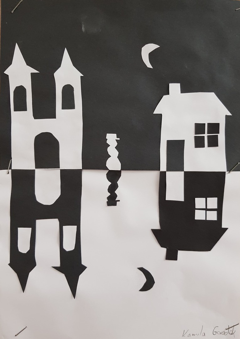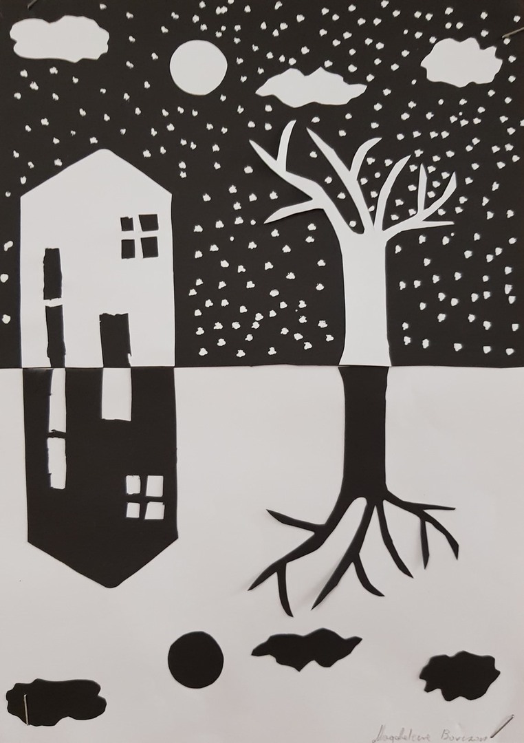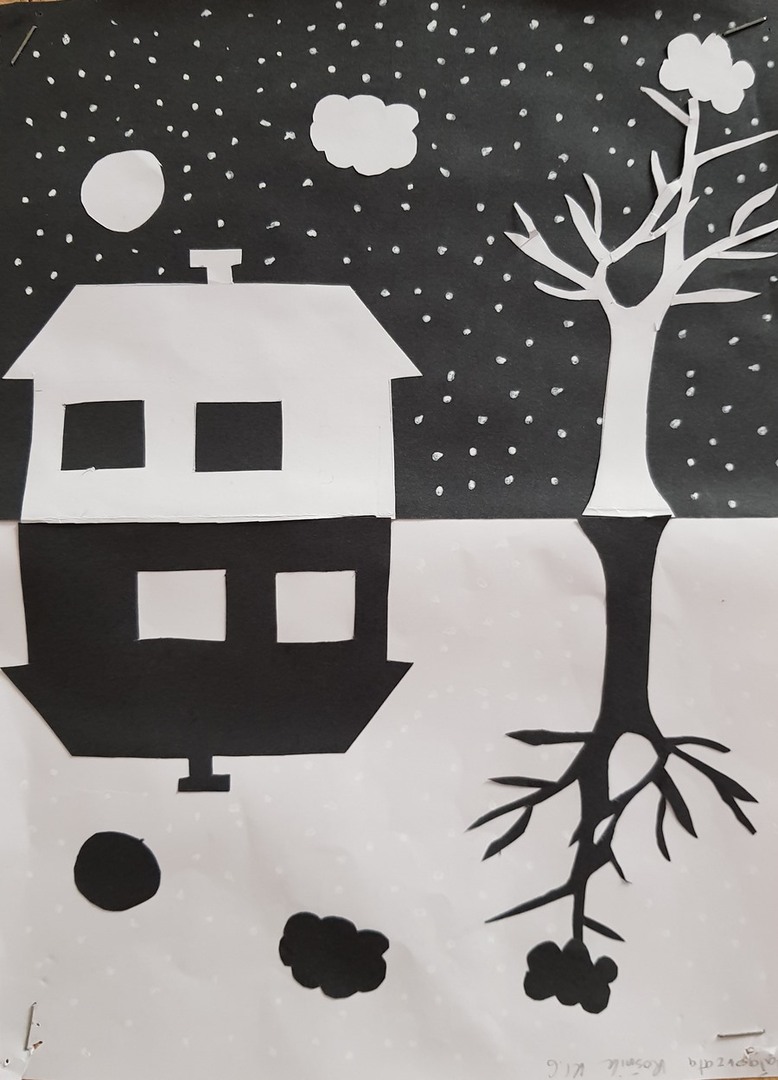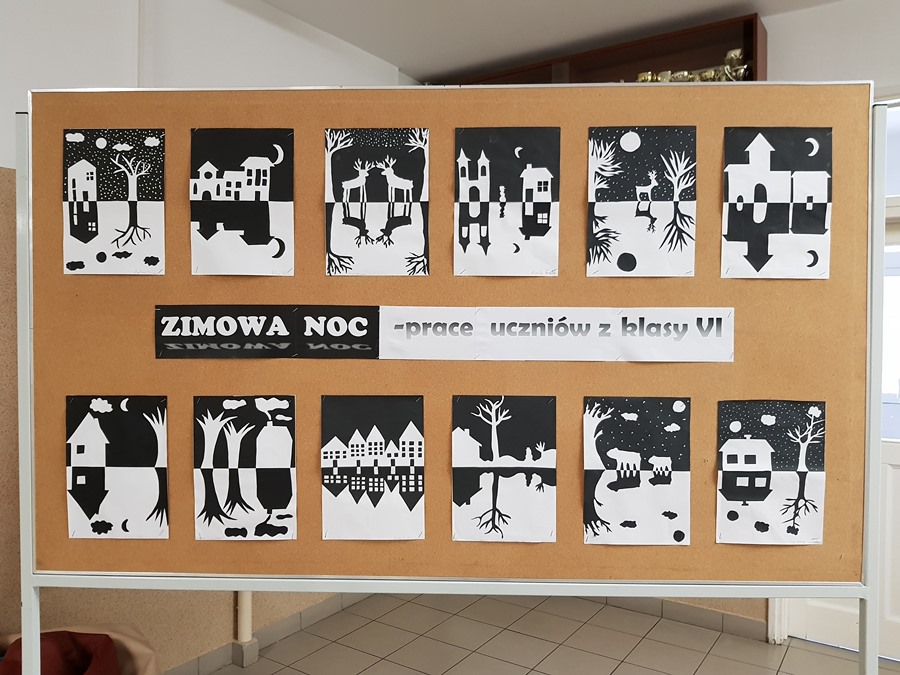 SZKOLNA GALERIA. "Zimowa noc" - prace plastyczne uczniów z klasy VI