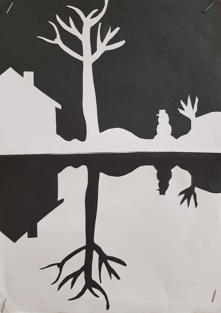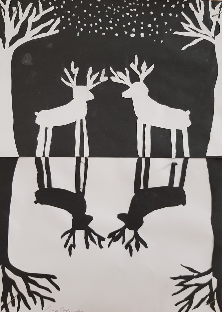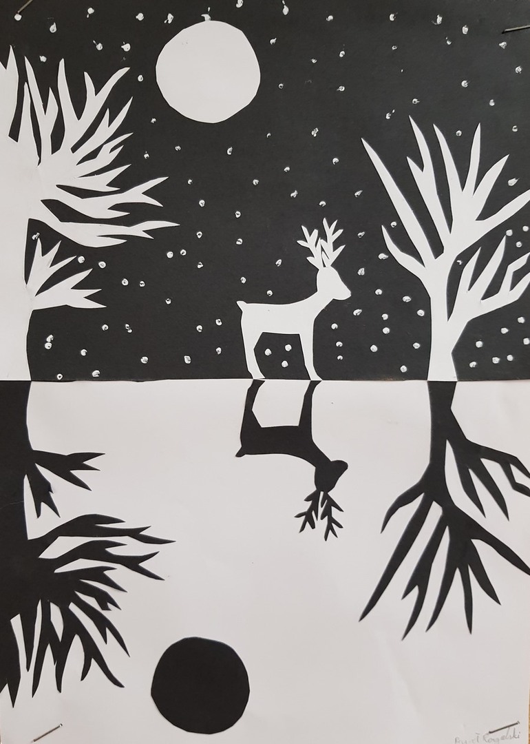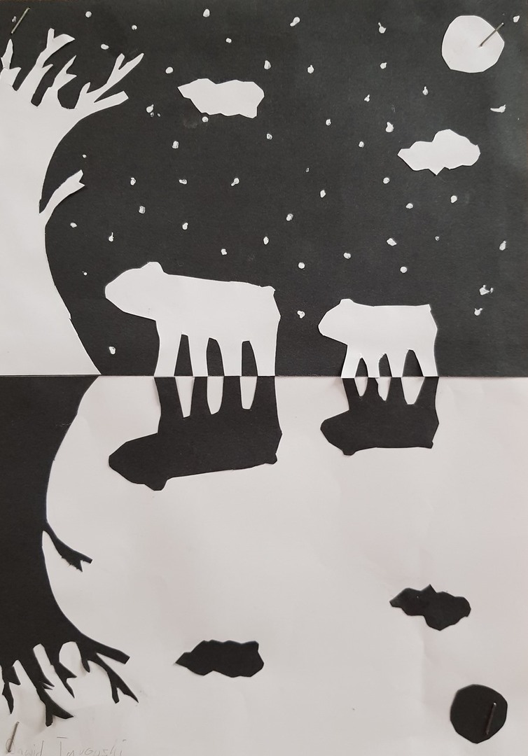 SZKOLNA GALERIA. "Zimowa noc" - prace plastyczne uczniów z klasy VI
