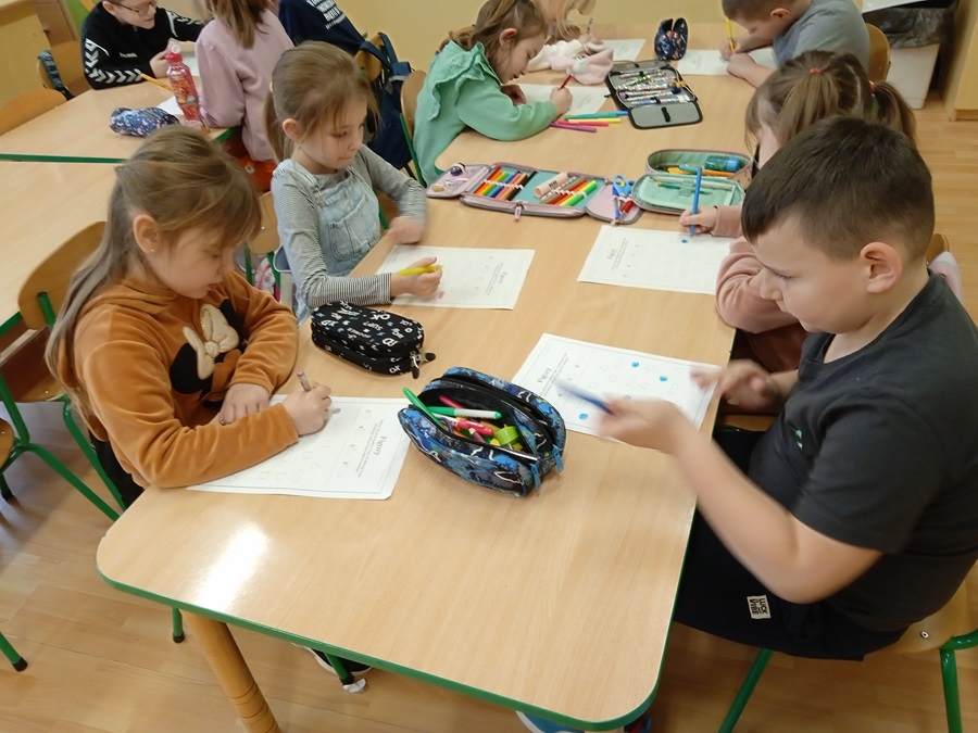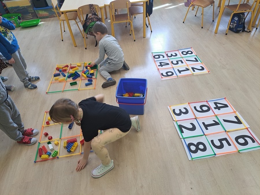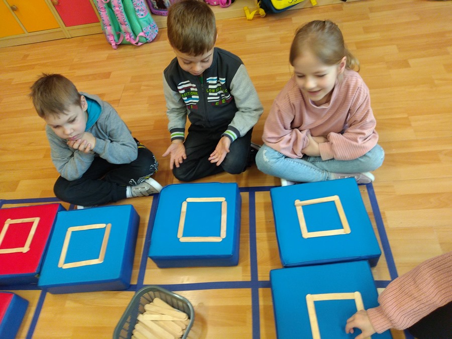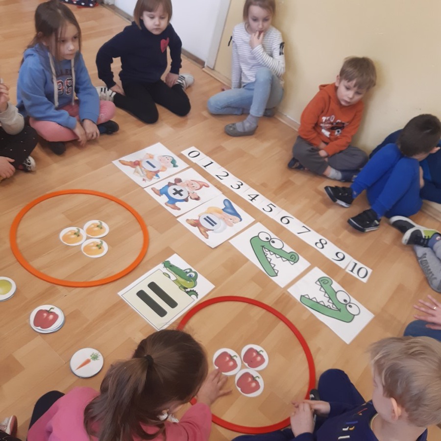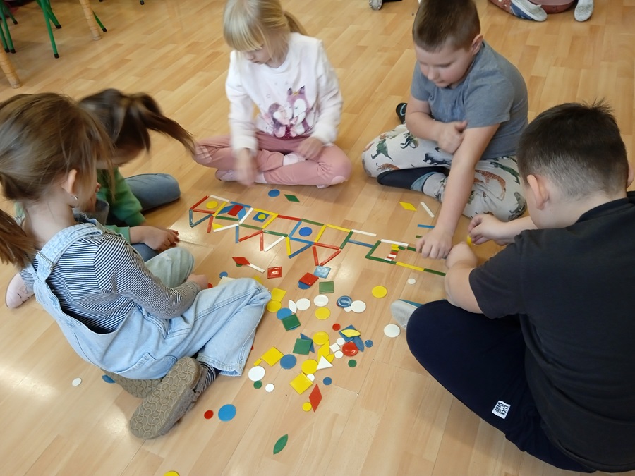 Grupy przedszkolne zostały zaproszone na specjalne zajęcia matematyczne. Dzieci doskonaliły m.in. orientację przestrzenną, liczyły, rozpoznawały figury geometryczne i tworzyły z nich niepowtarzalne obrazy. Wszystkie zadania jakie wykonywały pokazały, że matematyka może być ciekawa, przyjemna, a przede wszystkim daje dużo radości. Dzień upłynął w wesołej atmosferze, a wszystkie grupy poradziły sobie wspaniale!