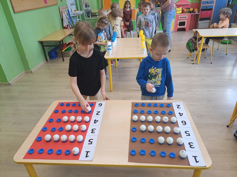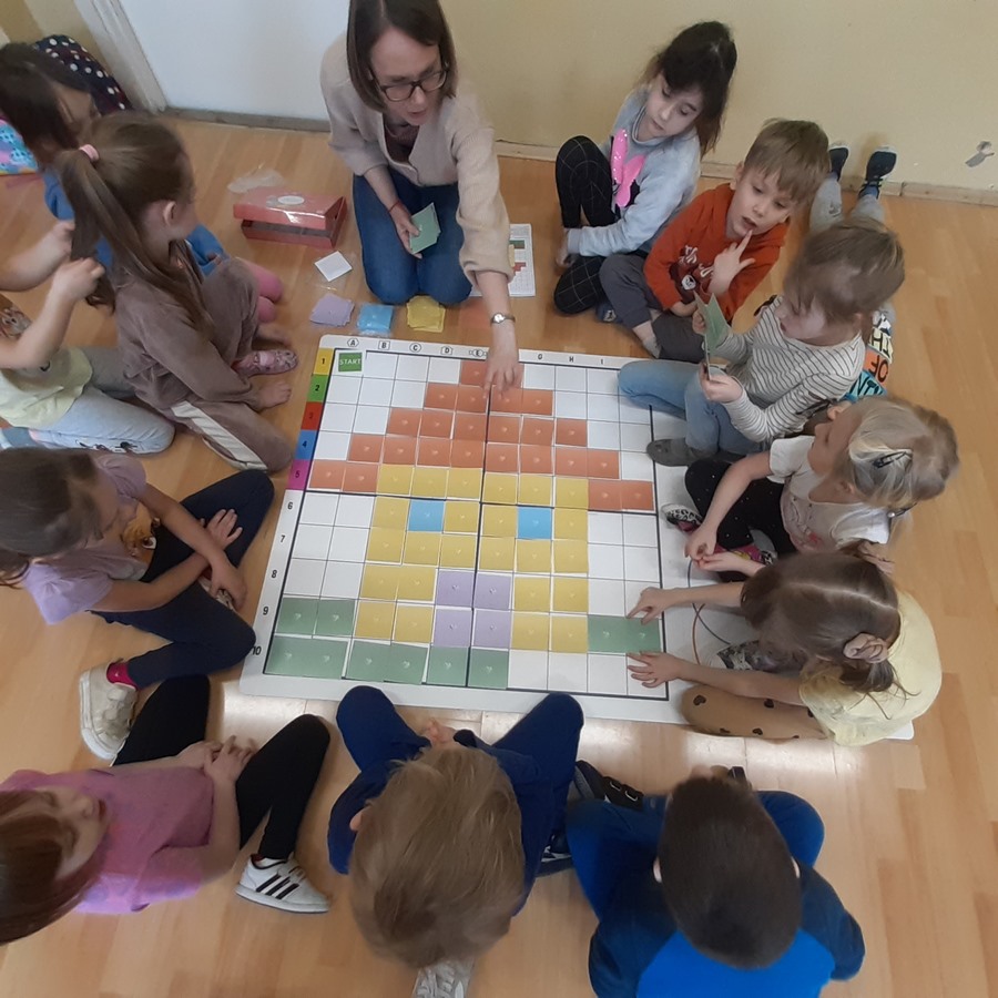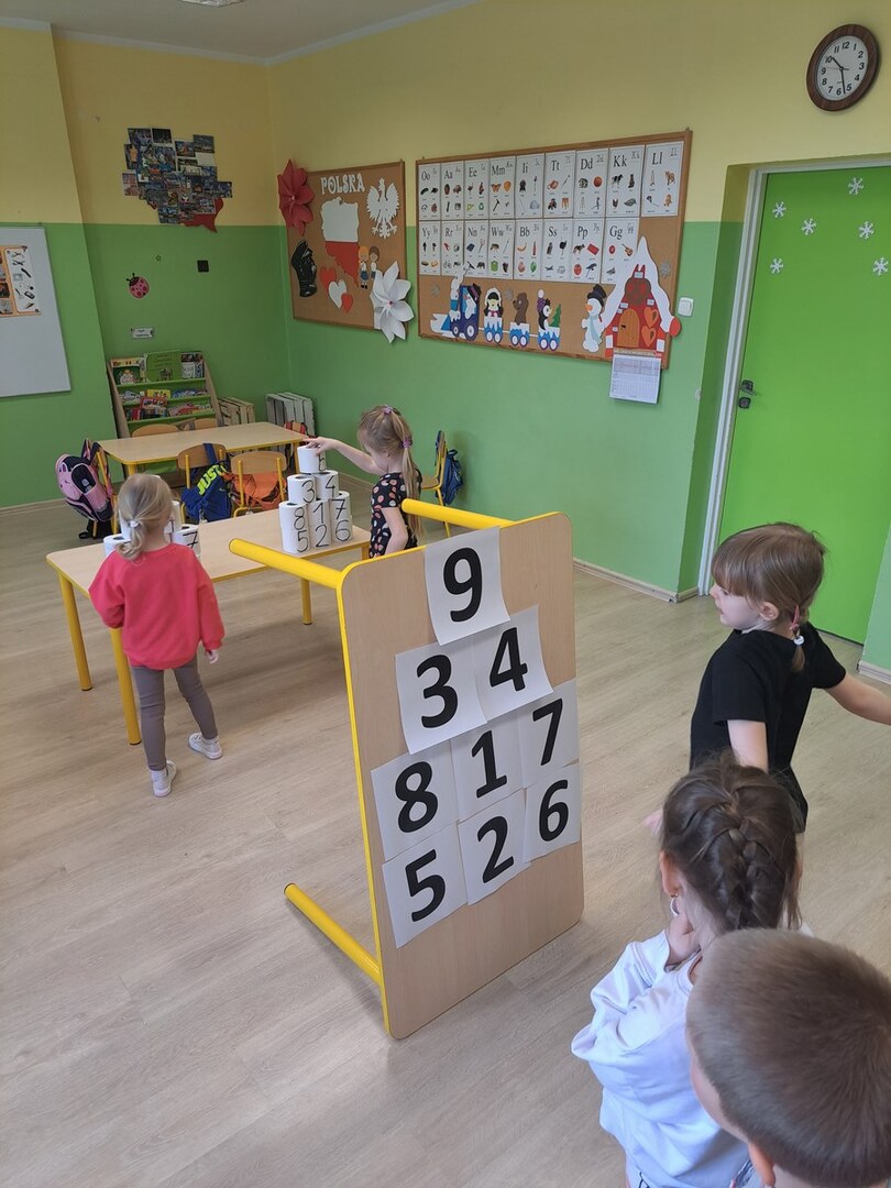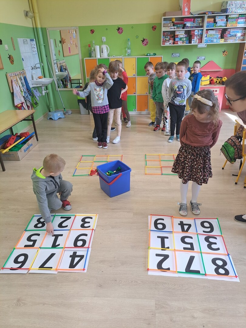 Grupy przedszkolne zostały zaproszone na specjalne zajęcia matematyczne. Dzieci doskonaliły m.in. orientację przestrzenną, liczyły, rozpoznawały figury geometryczne i tworzyły z nich niepowtarzalne obrazy. Wszystkie zadania jakie wykonywały pokazały, że matematyka może być ciekawa, przyjemna, a przede wszystkim daje dużo radości. Dzień upłynął w wesołej atmosferze, a wszystkie grupy poradziły sobie wspaniale!