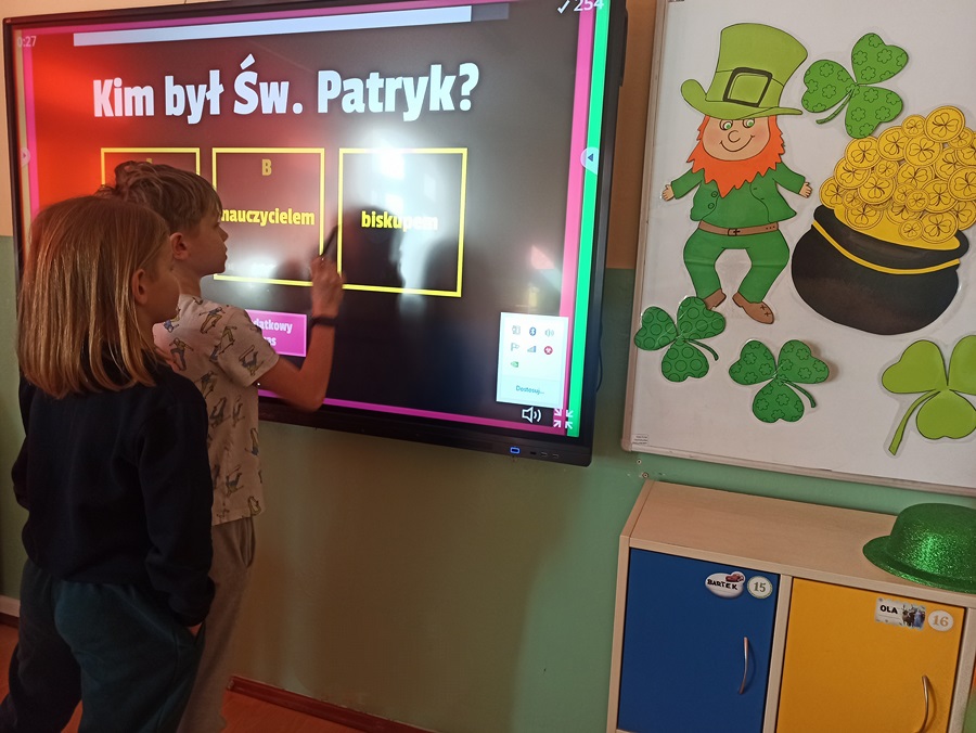 Dzień Świętego Patryka jest świętem narodowym Irlandii przypadającym 17 marca, a jego obchody wykraczają daleko poza jej granice. Uczniowie klas Ib i IIa także świętowali. W tym dniu dominował kolor zielony. Dzieci poznały legendę o Świętym Patryku, tradycje związane z tym świętem oraz wykonały koniczynę - symbol mający przynieść szczęście i pomyślność.