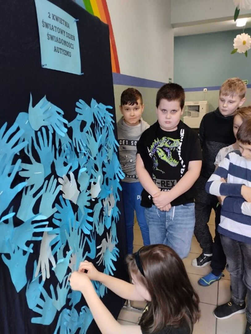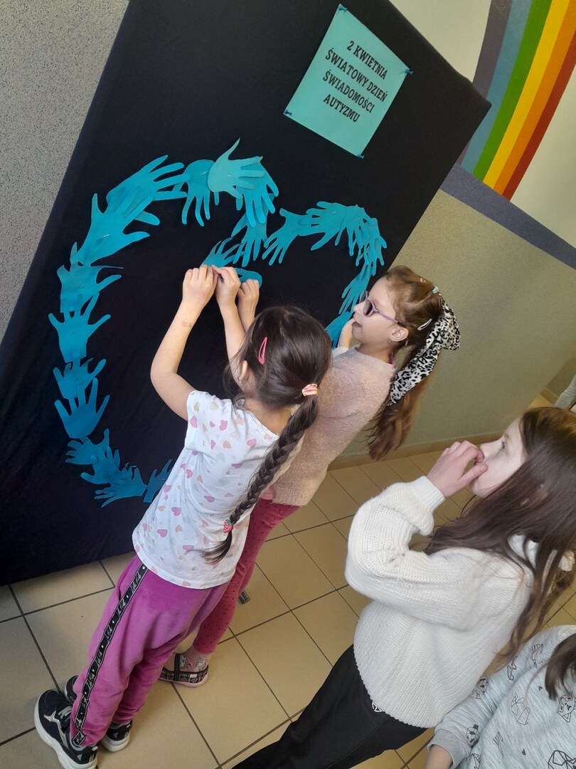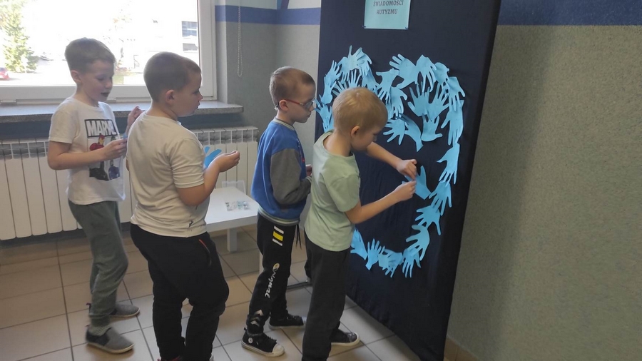 Po raz kolejny ten wyjątkowy dzień obchodzili również uczniowie klas I-III. W czasie pogadanek z wychowawczyniami zapoznali się z pojęciem „autyzm”, charakterystycznymi cechami jakie występują u osób z tym zaburzeniem oraz rozbudzali w sobie tolerancję wobec tych, którzy inaczej rozwijają się i postrzegają świat. Obejrzeliśmy również film edukacyjny, który przedstawił problemy życia codziennego dziecka dotkniętego autyzmem. Na znak solidarności, akceptacji i zrozumienia, wszyscy uczniowie wykonali niebieskie „pomocne dłonie”, z których powstało serce i ozdobiło szkolny korytarz.