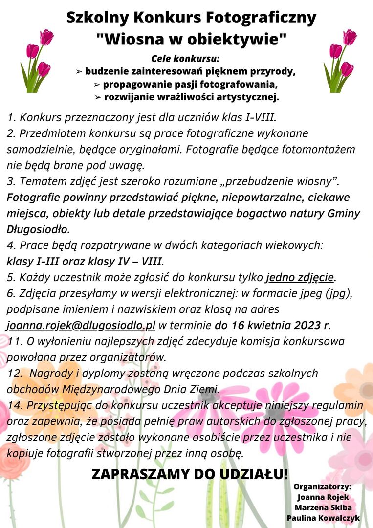 Szkolny Konkurs Fotograficzny "Wiosna w obiektywie"