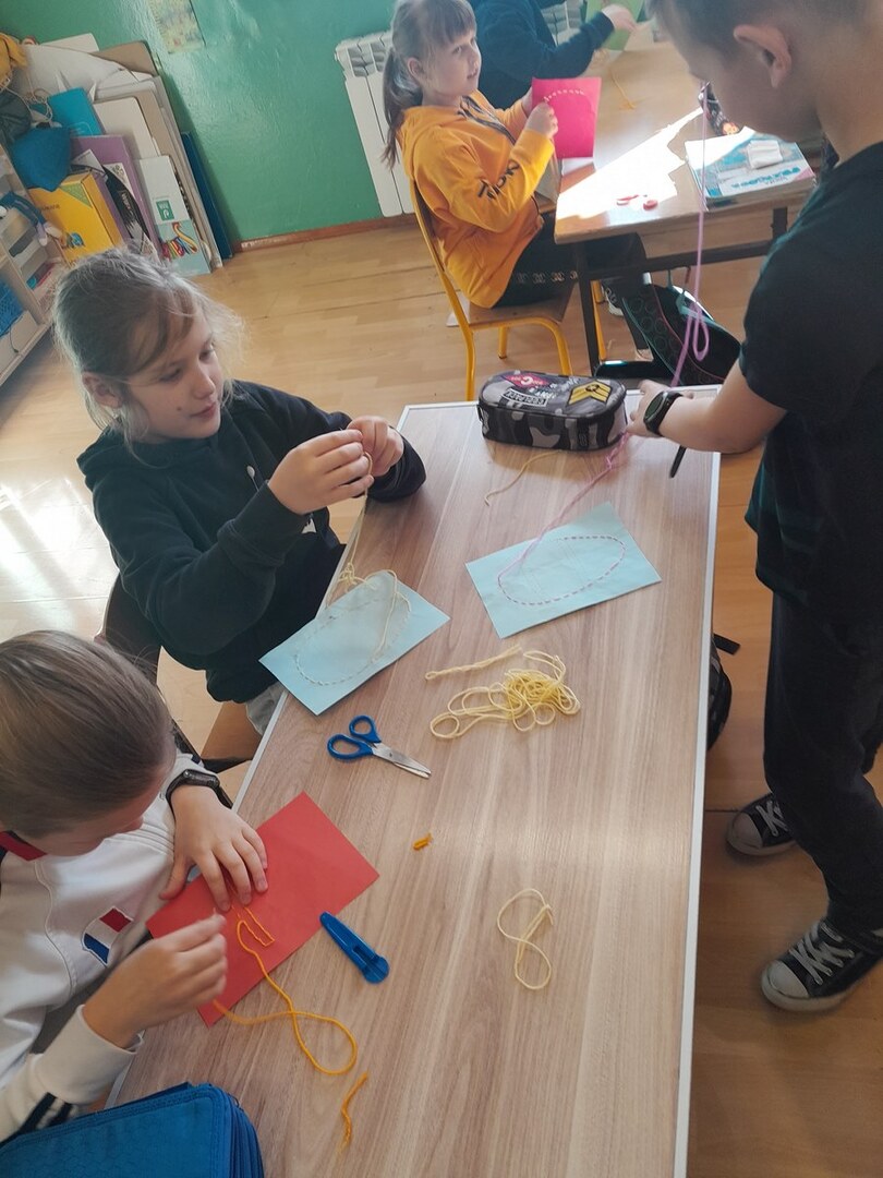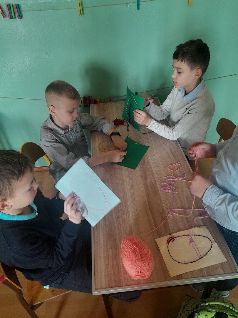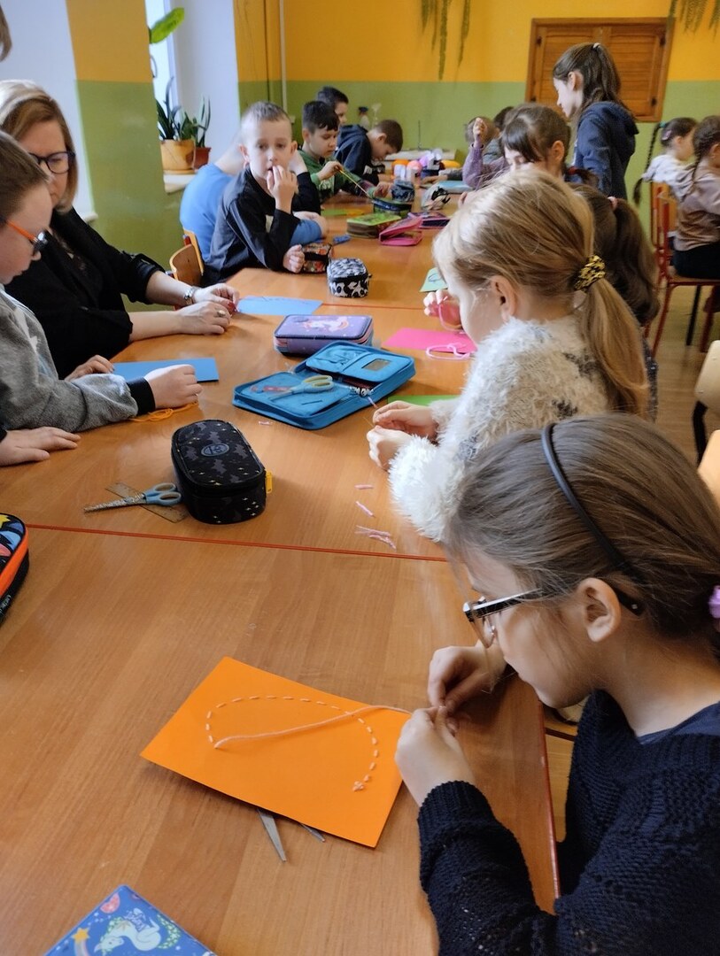 „Nitką malowane” - świąteczne warsztaty techniczne w klasach drugich z wykorzystaniem materiałów zakupionych w ramach projektu "Laboratoria przyszłości", 5.04.20023 r.