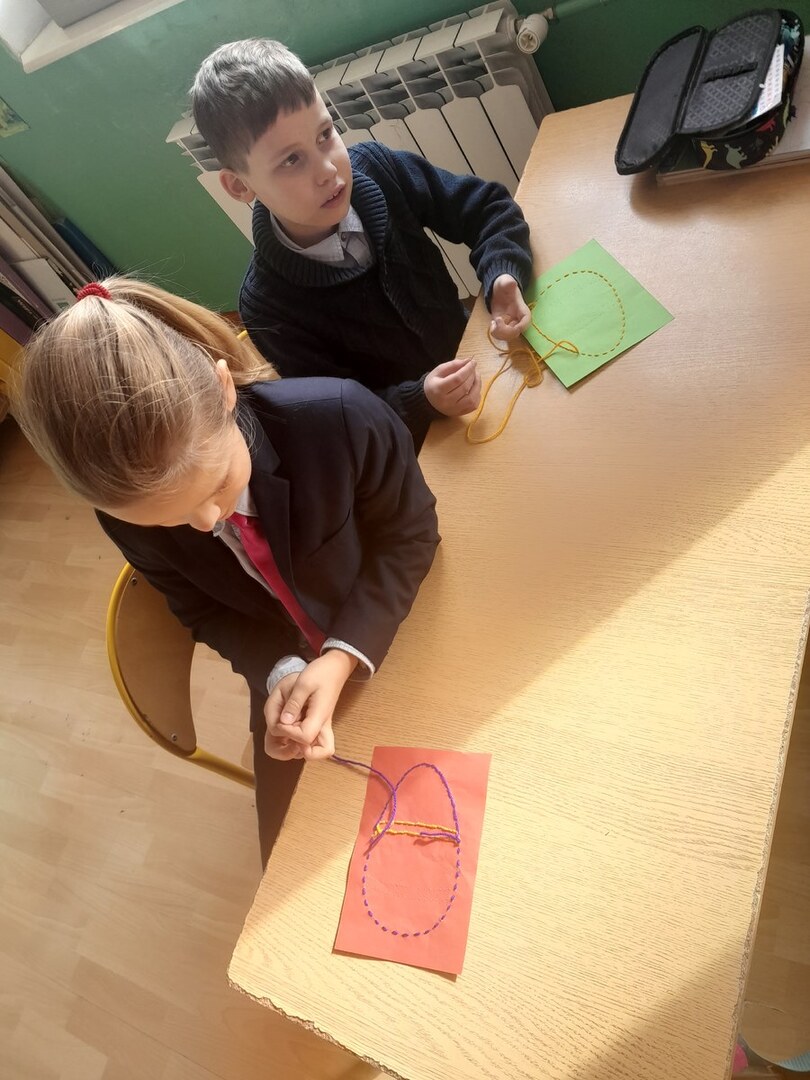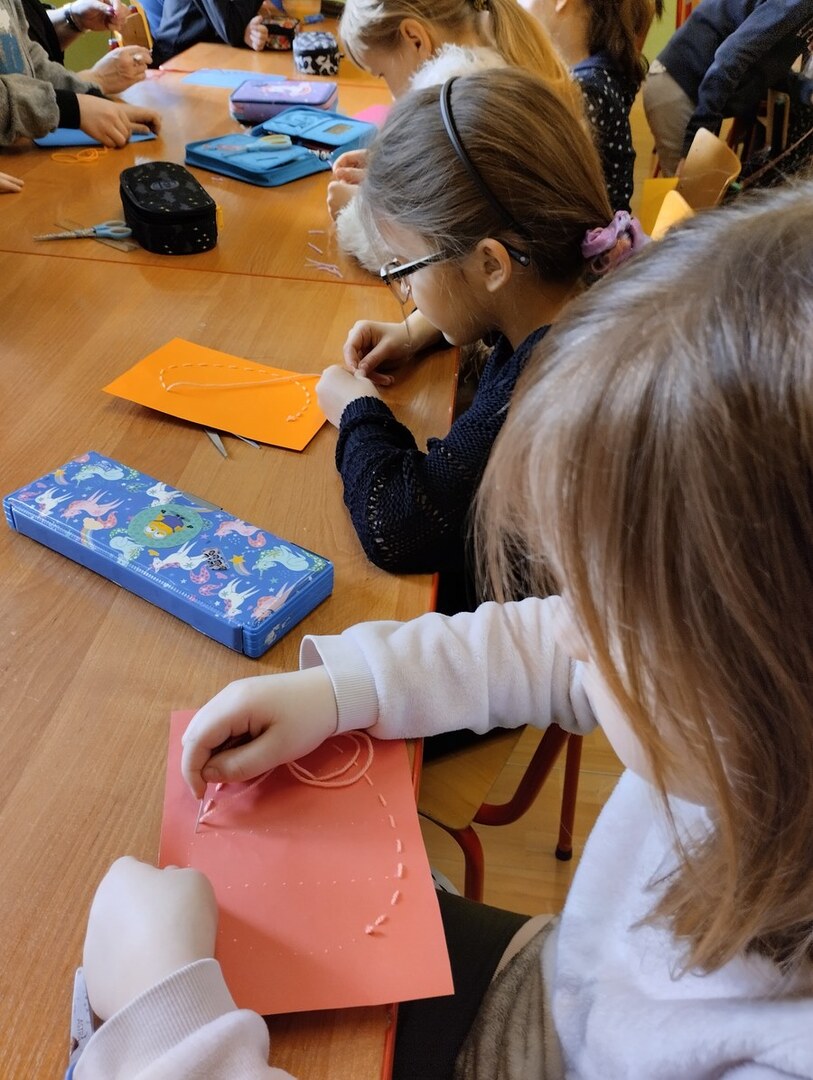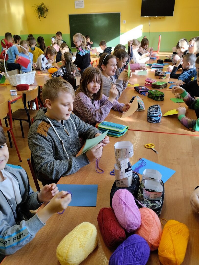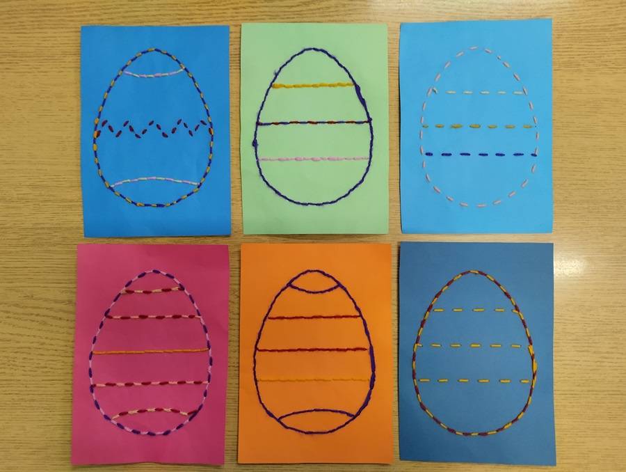 Ulubionym przedświątecznym zajęciem dzieci jest przygotowywanie pisanek, kraszanek, wydrapywanek czy oklejanek. Uczniowie klas drugich wzięli udział w świątecznych zajęciach technicznych, w trakcie których wyszywali na papierze kształty jajek i różne wzory kolorowymi włóczkami, zakupionymi w ramach Programu „Laboratoria Przyszłości”.