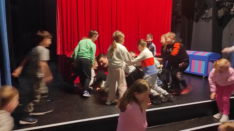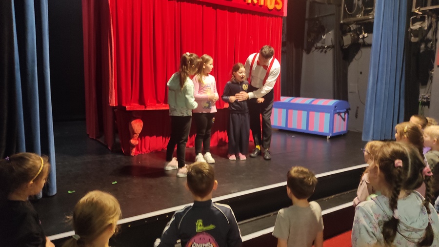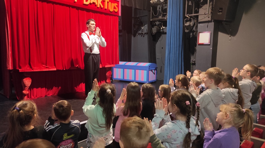 5 kwietnia uczniowie klas I uczestniczyli w wycieczce do Łomży. Najpierw na sali widowiskowej Teatru Lalki i Aktora dzieci obejrzały spektakl pt. „Karius i Baktus”. Następnie wzięły udział w warsztatach edukacji teatralnej, których celem było pobudzenie wyobraźni i potrzeby obcowania ze sztuką przez zabawę. Aktor prowadzący zajęcia pokazał spektrum możliwości warsztatowych teatru, animację ciała, język ciała, ćwiczenia dykcyjne i emisyjne, animację przedmiotu i wiele innych technik, które można wykorzystać w pracy twórczej. Po spotkaniu z aktorem wszyscy udali się na wieżę widokową, z której podziwiali panoramę Łomży. W teatrze dzieci miały również możliwość obejrzeć z bliska lalki, które powstały na potrzeby wystawianych spektakli. Kolejną i długo wyczekiwaną przez dzieci atrakcją była wizyta w sali zabaw „Kroko Spoko”. Pobyt w sali pozwolił uczniom na rozładowanie dziecięcej energii, a co najważniejsze na doskonałą i radosną zabawę. Ten dzień dostarczył uczestnikom wycieczki wiele emocji i niezapomnianych wrażeń.