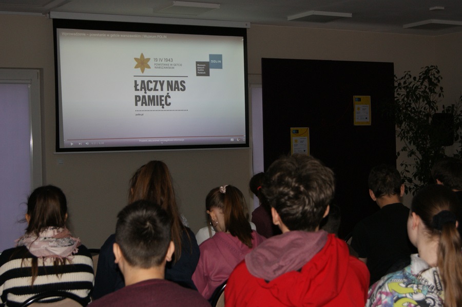 Nasza szkoła wraz z Gminną Biblioteką Publiczną wspólnie upamiętniły 80. rocznicę wybuchu powstania w getcie warszawskim. Na znak pamięci uczestnicy przypięli żonkile.