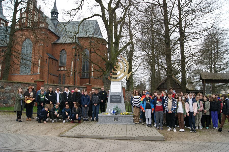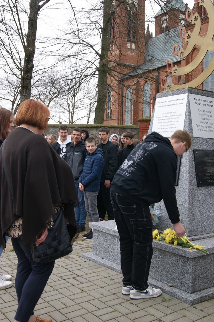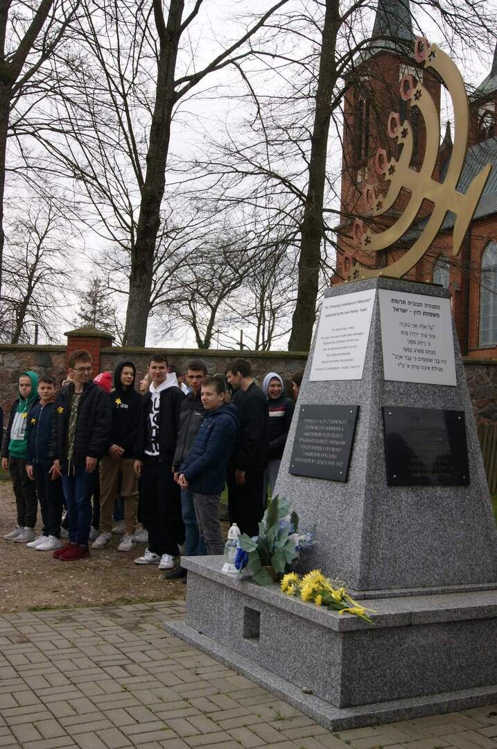 Po projekcji uczniowie klas VI-VIII wraz z dyrektorem, opiekunami i bibliotekarkami złożyli kwiaty pod pomnikiem pamięci ludności żydowskiej z Długosiodła.
