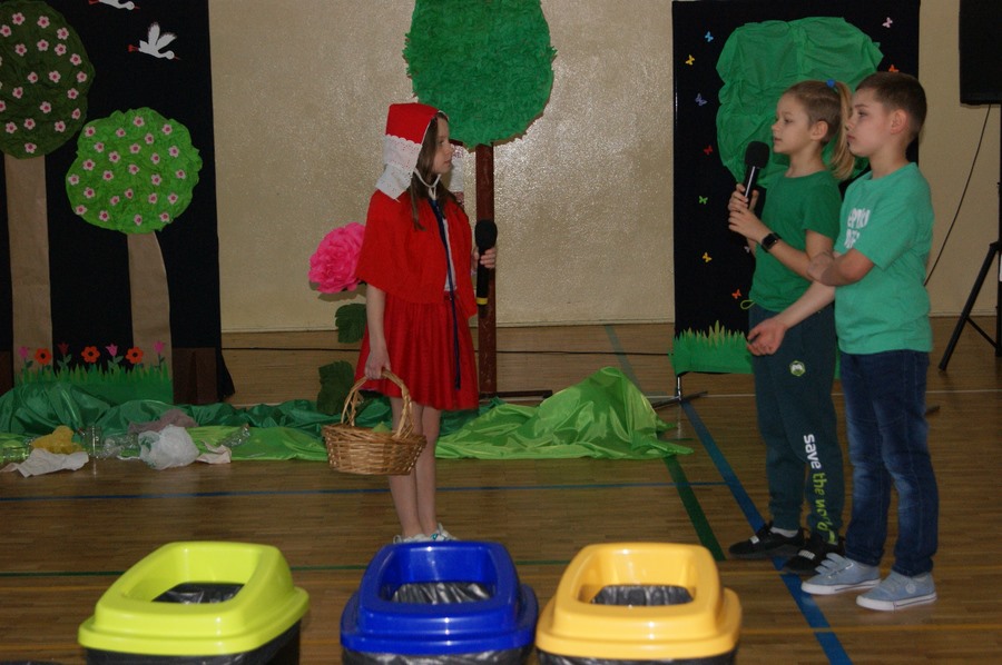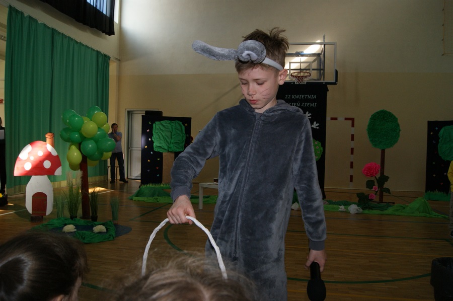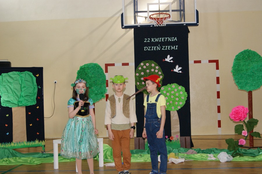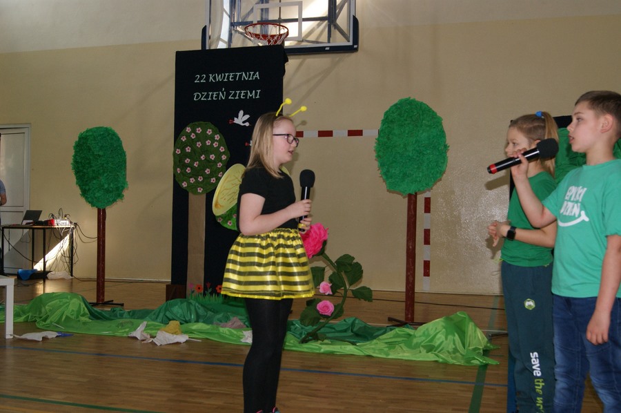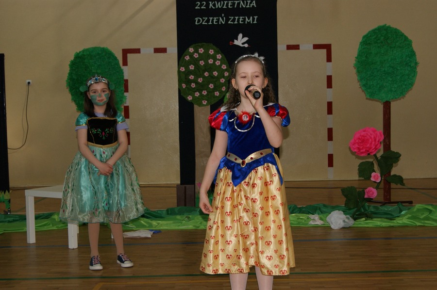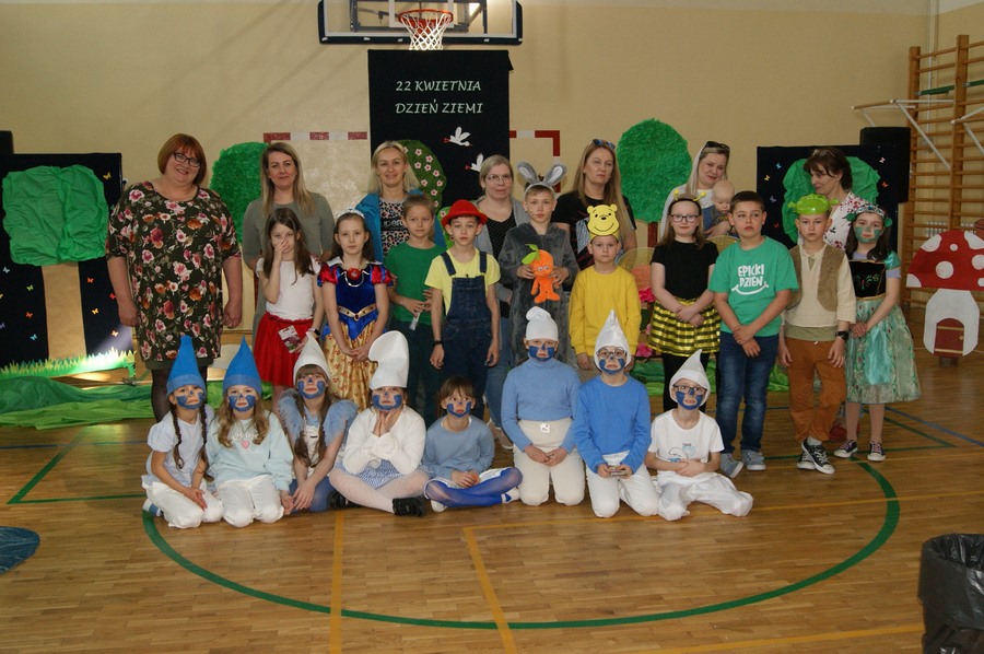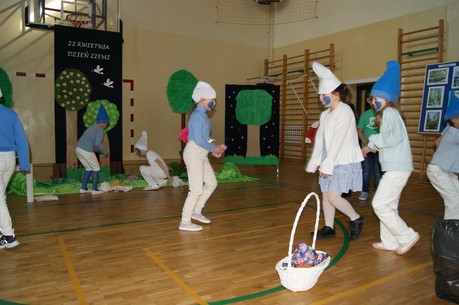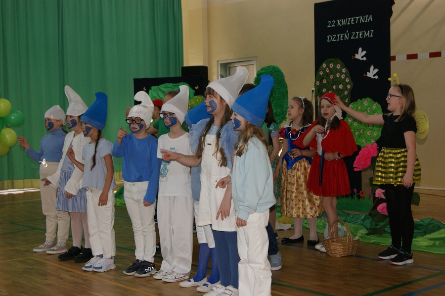 24 kwietnia uczniowie klasy IIa, IIb i Ib zaprezentowali spektakl pt. „W krainie bajkowych ekobohaterów”, przygotowany z okazji obchodów Dnia Ziemi. Występ był doskonałą okazją do utrwalenia wiadomości o podstawowych zasadach ekologicznych. Znani i lubiani bohaterowie, w scenerii prosto z bajkowego lasu, uświadamiali wszystkim widzom potrzebę troski o otaczający nas świat - uczyli recyclingu, segregacji odpadów, zasad zdrowego ekologicznego odżywiania oraz ochrony roślin i zwierząt.