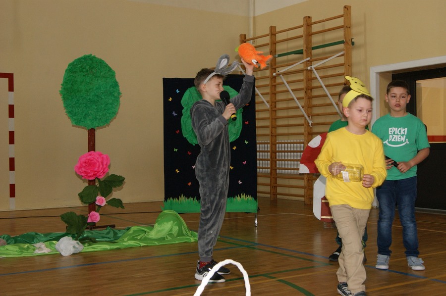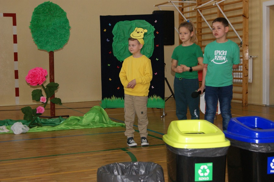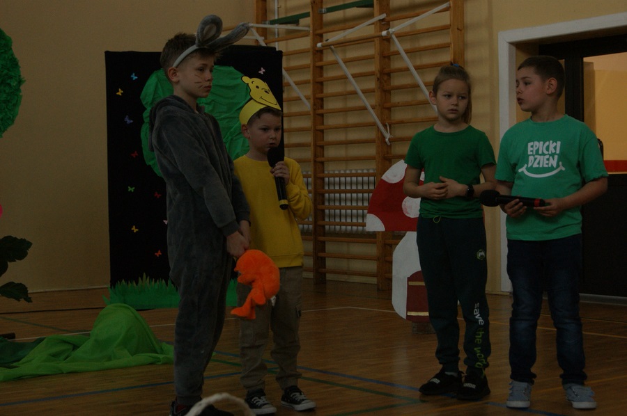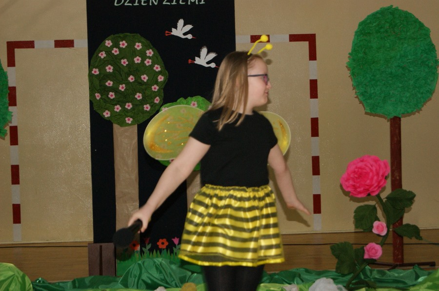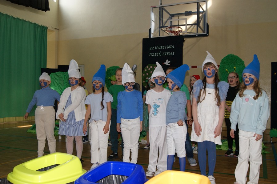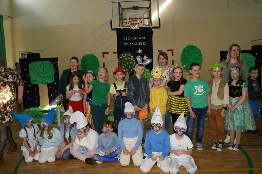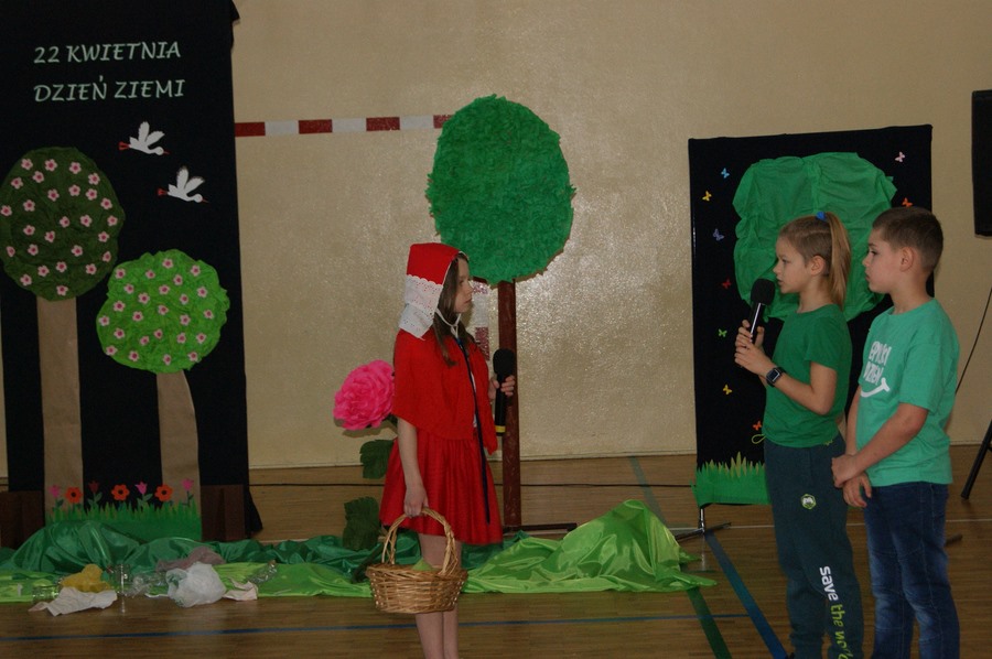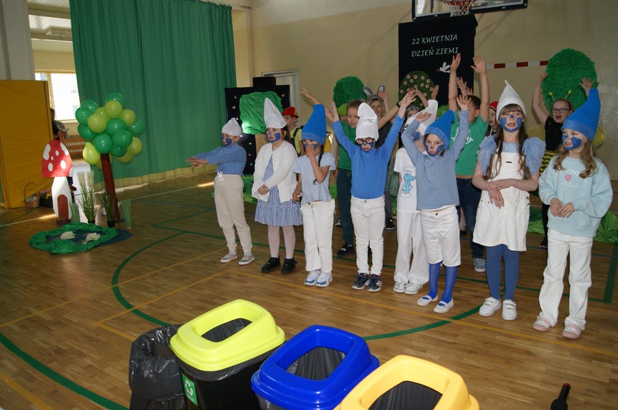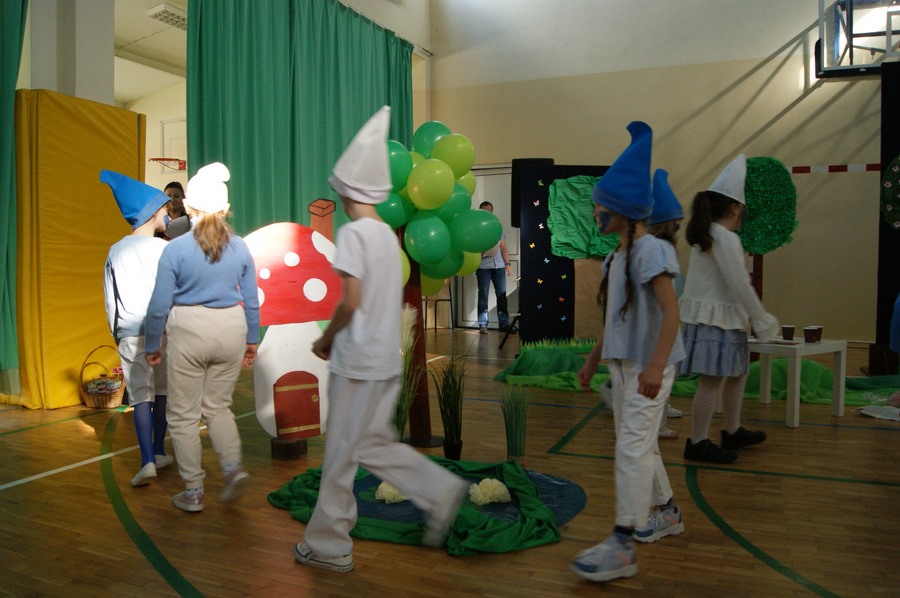 24 kwietnia uczniowie klasy IIa, IIb i Ib zaprezentowali spektakl pt. „W krainie bajkowych ekobohaterów”, przygotowany z okazji obchodów Dnia Ziemi. Występ był doskonałą okazją do utrwalenia wiadomości o podstawowych zasadach ekologicznych. Znani i lubiani bohaterowie, w scenerii prosto z bajkowego lasu, uświadamiali wszystkim widzom potrzebę troski o otaczający nas świat - uczyli recyclingu, segregacji odpadów, zasad zdrowego ekologicznego odżywiania oraz ochrony roślin i zwierząt.