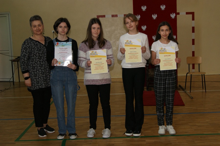Kwalifikację do wystawy pokonkursowej otrzymały również prace Patrycji Pędzich z kl. Va, Wiktorii Chodyny z kl. Va i Julii Głażewskiej z kl. VII.