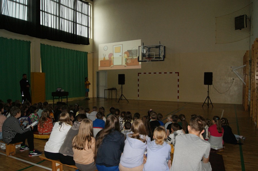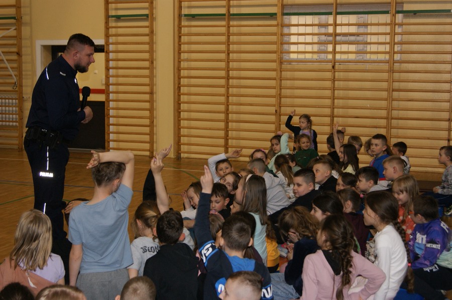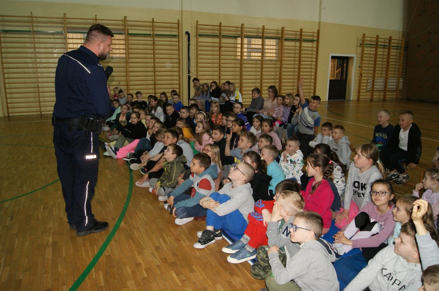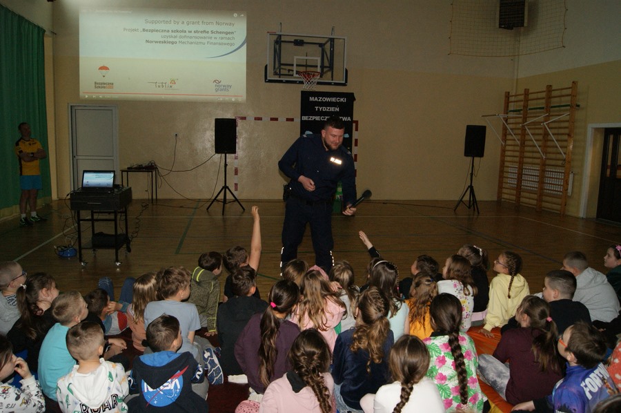 W ramach Mazowieckiego Tygodnia Bezpieczeństwa uczniowie klas I-III uczestniczyli w spotkaniu z policjantem. Dzielnicowy Komisariatu Policji w Długosiodle p. Adam Owczarek opowiedział o bezpieczeństwie w drodze do szkoły, jak również i poza nią. Przypomniał także numery alarmowe i sposoby wzywania pomocy. Podczas prezentacji filmu „Bezpieczne zachowania” główny bohater, policjant Poli wskazał właściwe zachowania w szkole i w domu oraz zwrócił uwagę na zagrożenia pojawiające się w kontaktach z nieznajomymi. Szczególną uwagę zwrócił również na niebezpieczne sytuacje, które wynikają z niewłaściwego korzystania z Internetu.
