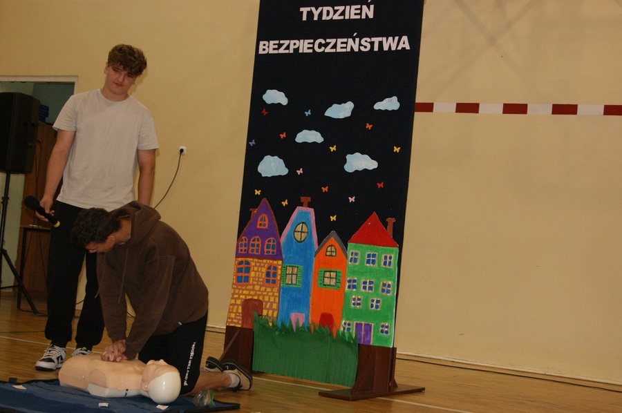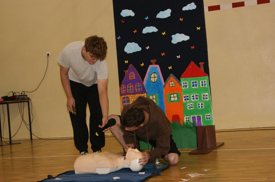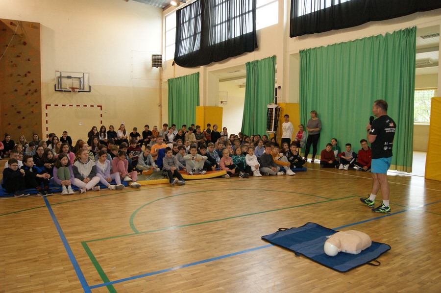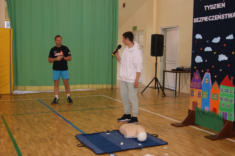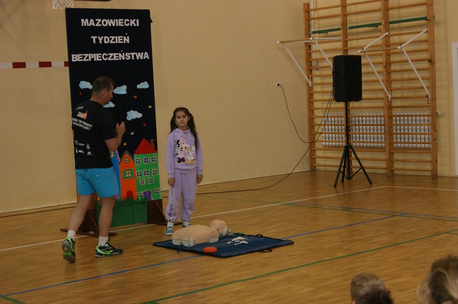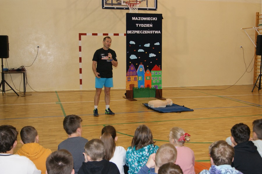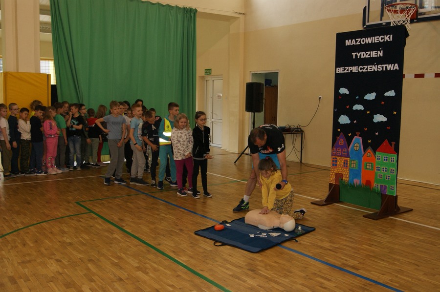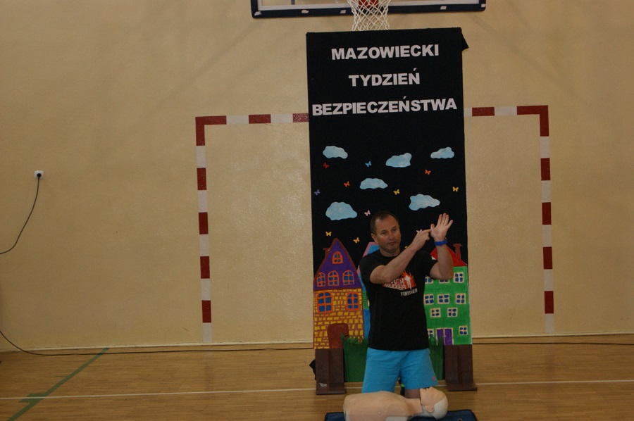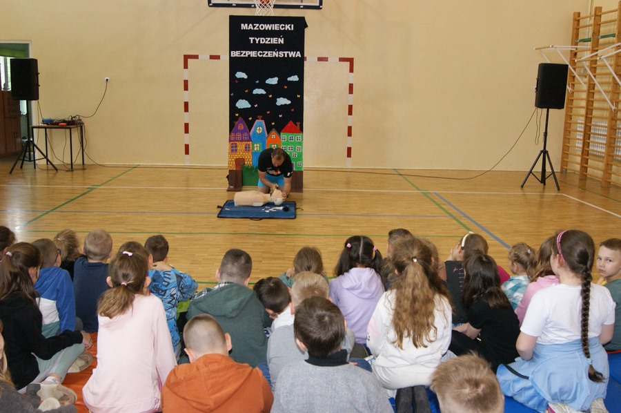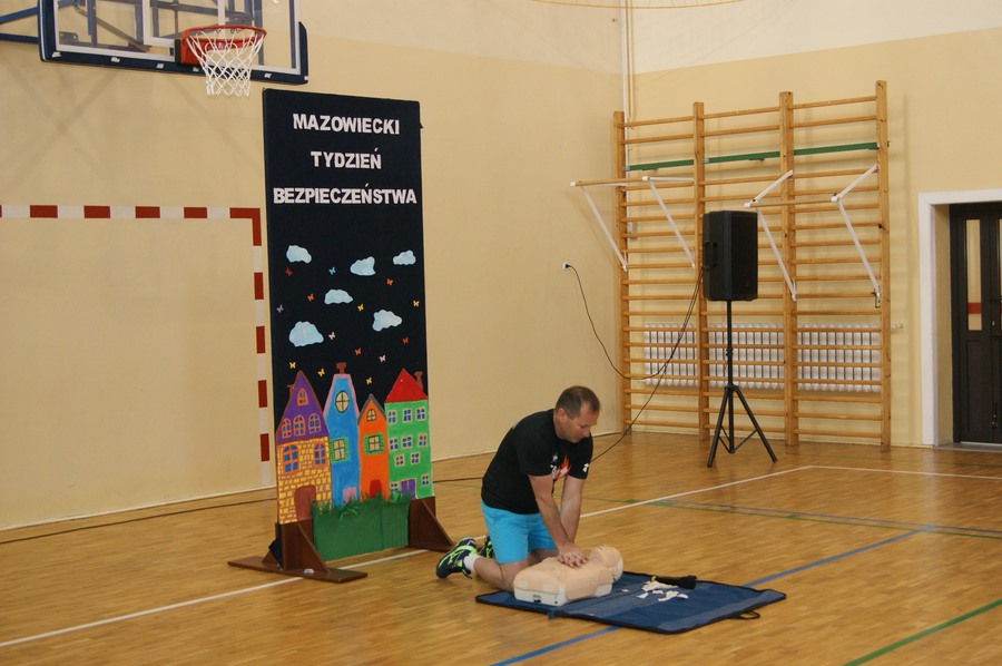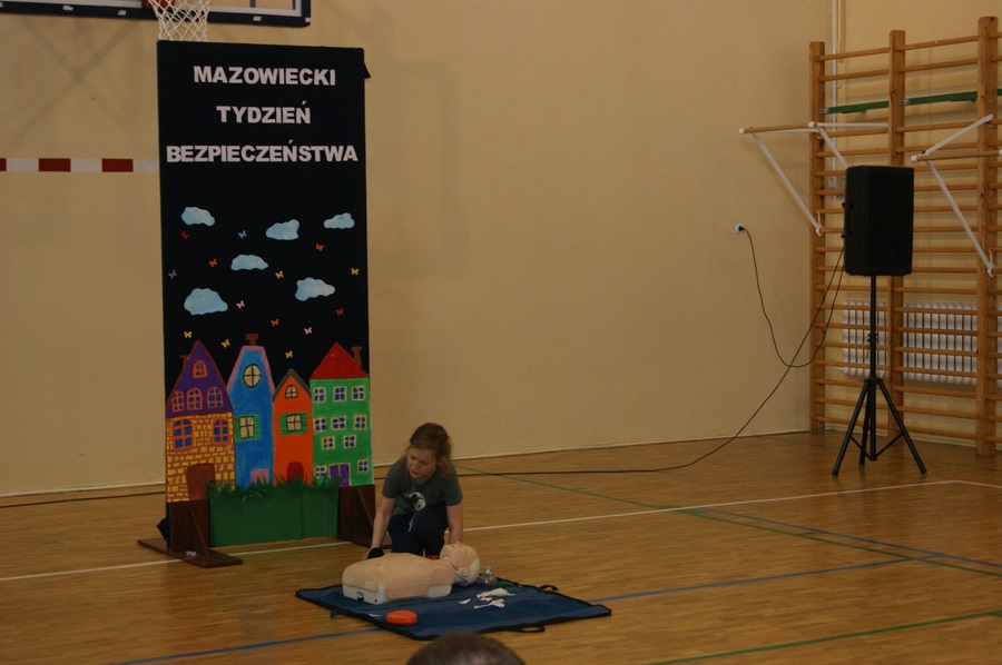 16 maja w klasach I-VIII odbyły się zajęcia z udzielania pierwszej pomocy przedmedycznej. Działanie to zostało przeprowadzone w ramach Mazowieckiego Tygodnia Bezpieczeństwa przez p. Wojciecha Trentowskiego. Nauczyciel przekazał swoją wiedzę dzieciom na temat podstawowych czynności, których wykonywanie może przywrócić zdrowie lub uratować życie. Uczniowie poznali prawidłowe zasady wzywania pomocy, układania poszkodowanego we właściwej pozycji oraz wykonywania resuscytacji krążeniowo-oddechowej. Są to jedne z najważniejszych czynności ratujących życie.