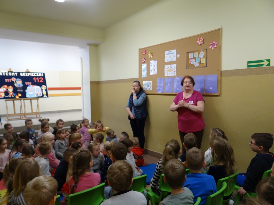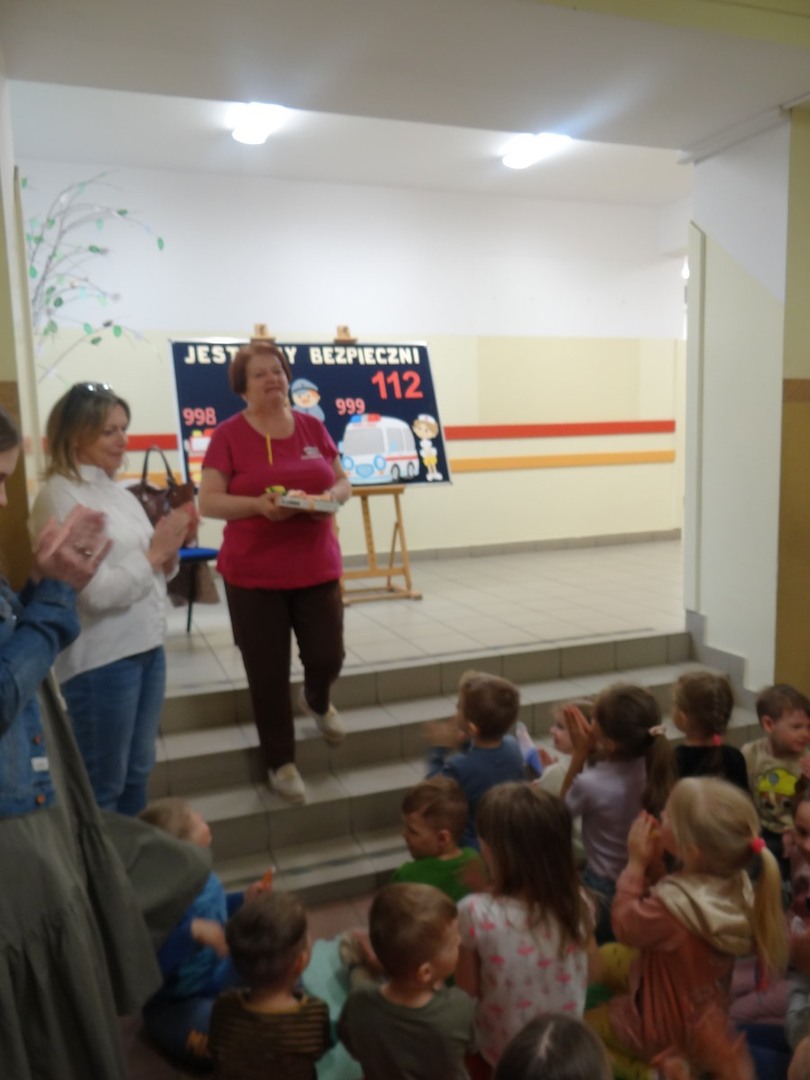 16 maja przedszkolaki odwiedziła pielęgniarka z Ośrodka Zdrowia- pani Krystyna Icińska. Podczas spotkania przekazała maluchom cenne wskazówki nt. tego jak dbać o higienę osobistą oraz podała mnóstwo rad dotyczących zdrowego trybu życia. Zwróciła uwagę na nasze bezpieczeństwo, szczególnie teraz, gdy okres wakacyjny przed nami. Ostrzegała przed kleszczami, oraz kazała pamiętać o nakryciu głowy w upalne dni i kremie z filtrem.P.s. Pani Krysiu! Bardzo dziękujemy za przybycie, dzięki pani informacjom nasza kondycja zdrowotna na pewno się poprawi, będziemy starali się wcielać w życie, wszystkie pani wskazówki.