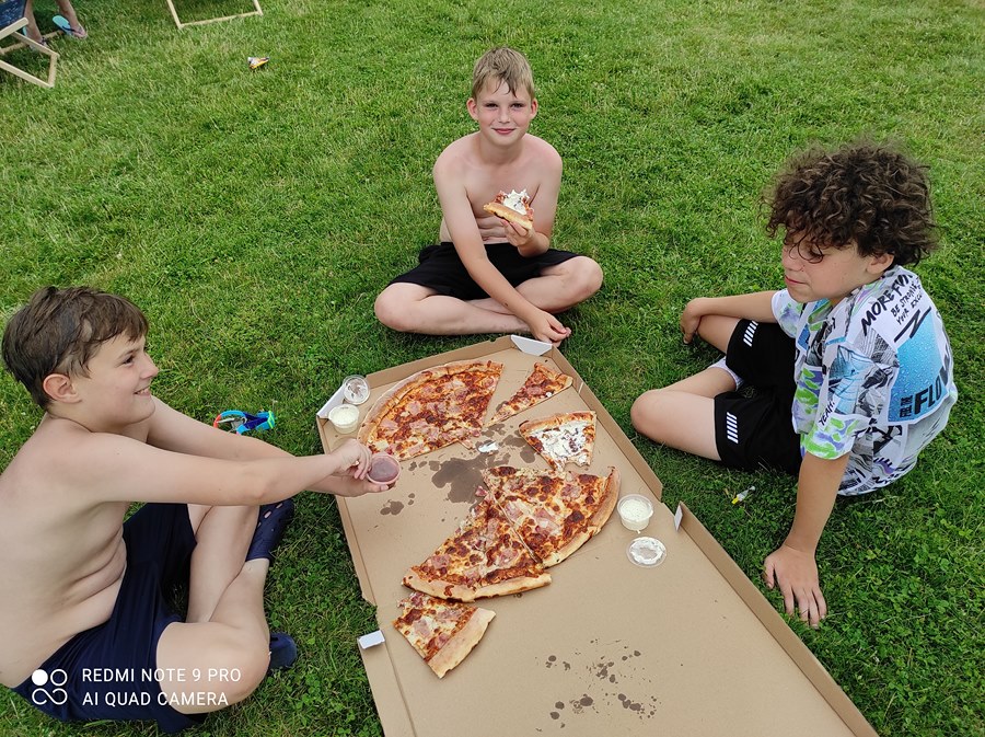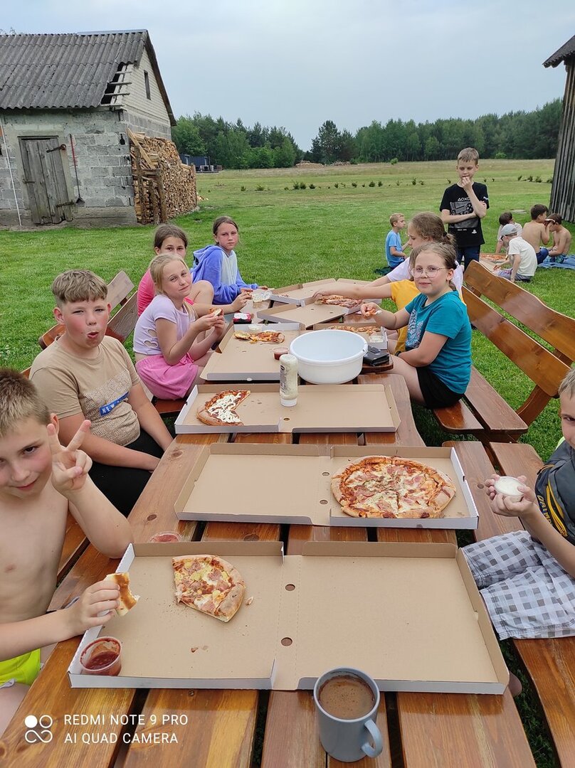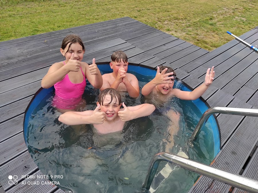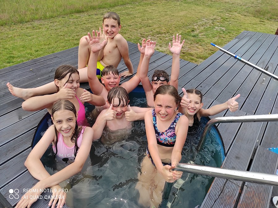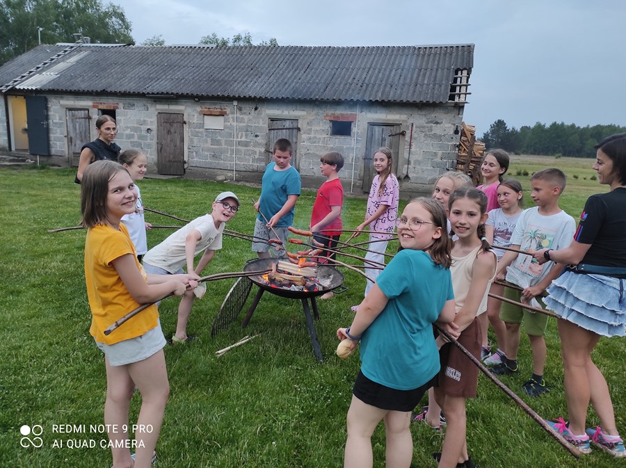 W dniach 21.06-22.06.2023 r. odbył się biwak klasy IV. 26 uczniów pod opieką pani Svitlany Hrechko i pana Radosława Heronimka udało się na biwak do Fazendy Folwark. Pogoda dopisała, było pięknie i słonecznie. Smażyliśmy kiełbaski na ognisku oraz braliśmy udział w grach i zabawach integracyjnych. Dołączyli do nas także nasi rodzice. Największą atrakcją była kąpiel w baliach z podgrzewaną wodą. Wspaniale spędziliśmy czas i po południu zmęczeni, ale zadowoleni wróciliśmy do domu. Był to nasz pierwszy biwak klasowy, ale mamy nadzieję, że nie ostatni.