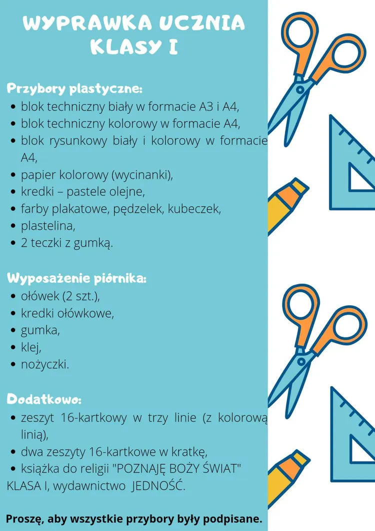 • Wyprawka dla uczniów klas I na rok szkolny 2023/2024