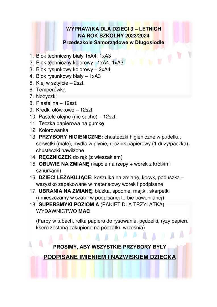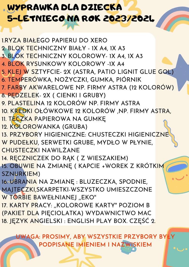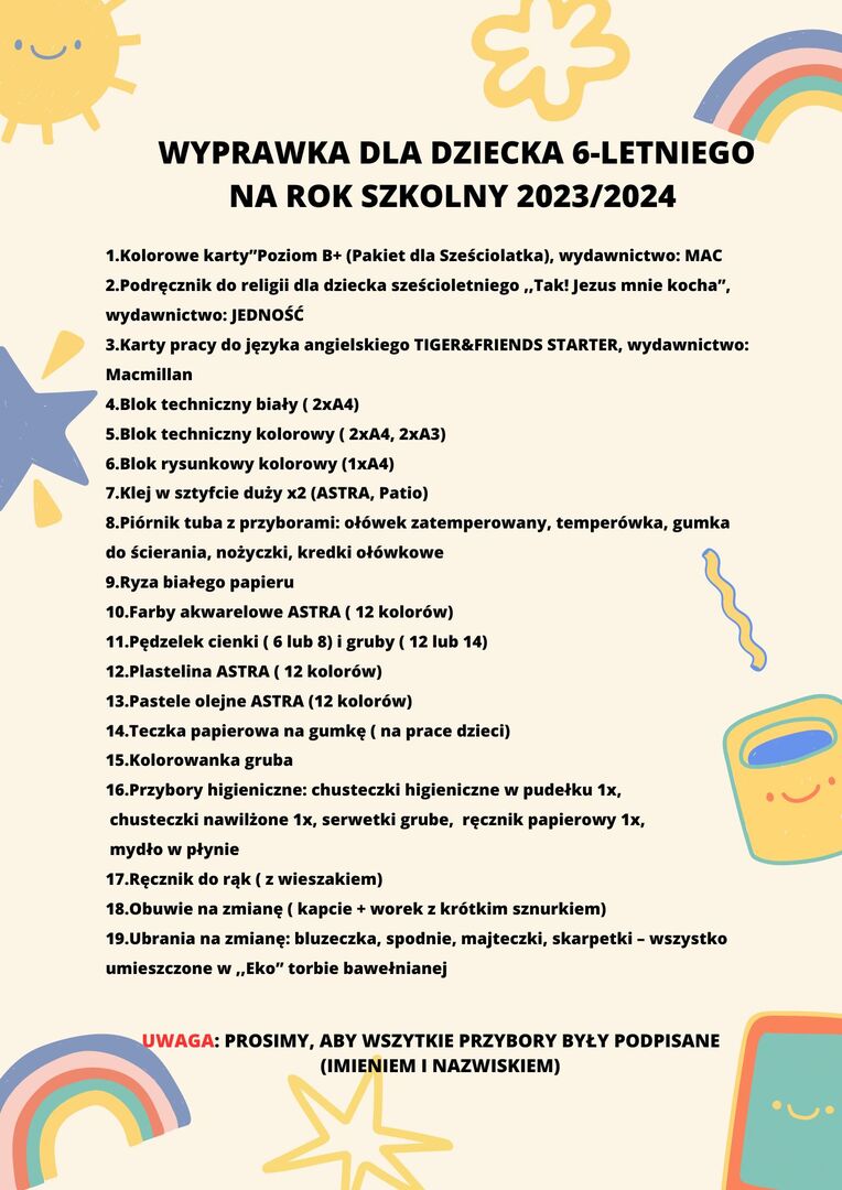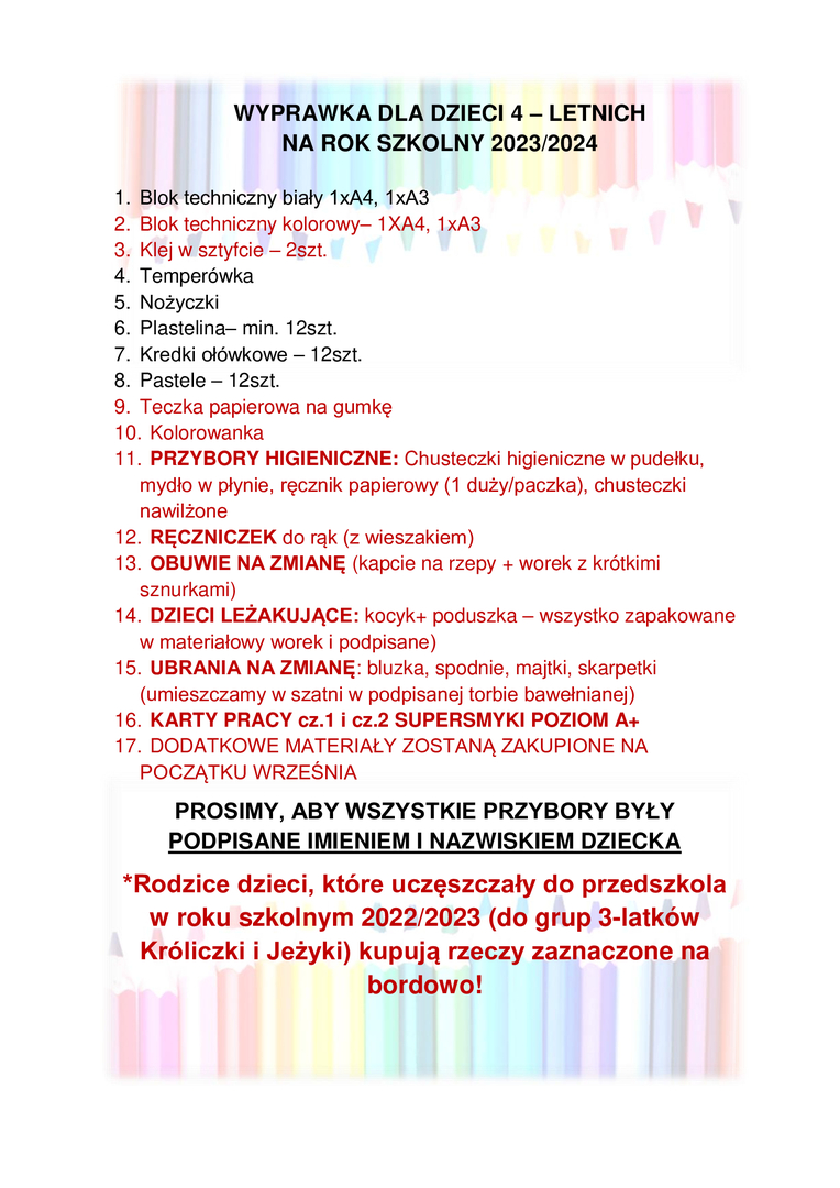 • Wyprawka dla przedszkolaków w roku szkolnym 2023/2024