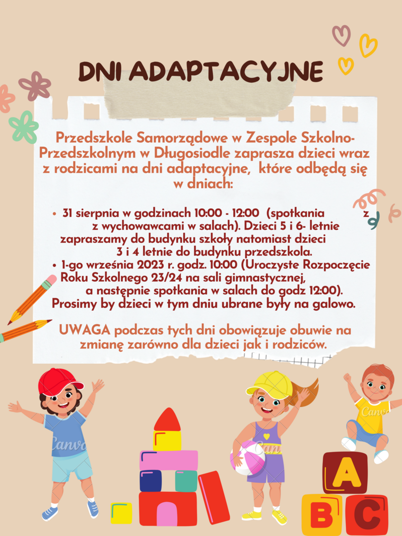 • Informacja o rozpoczęciu roku szkolnego 2023/2024