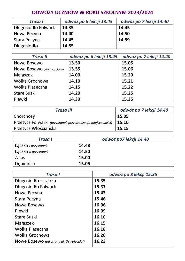 • Dowozy i odwozy uczniów w roku szkolnym 2023/2024