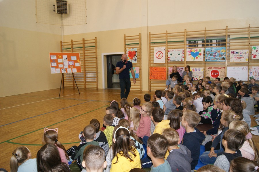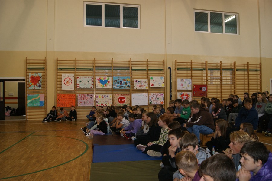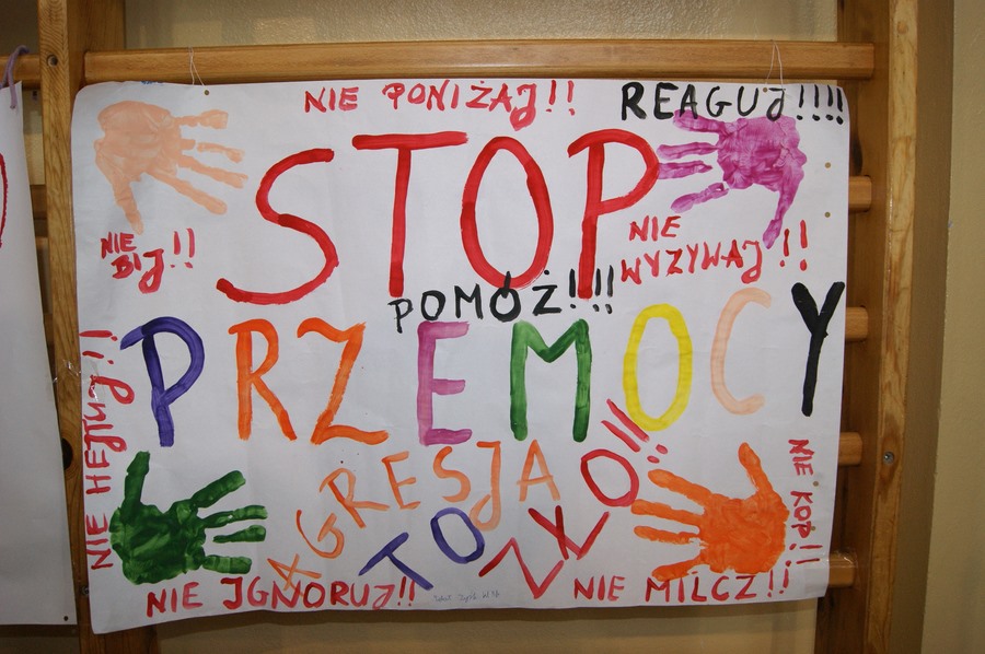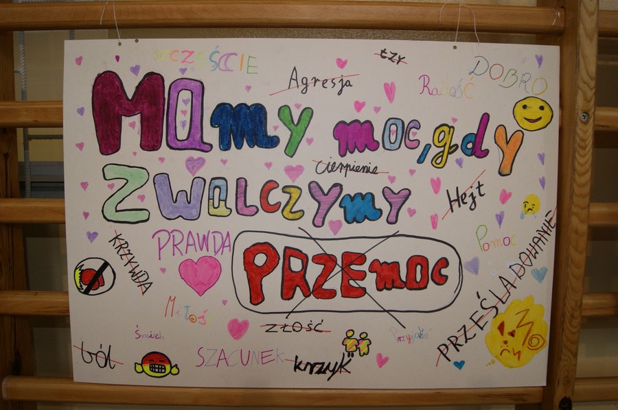 6 października obchodziliśmy w naszej szkole Międzynarodowy Dzień Bez Przemocy. Wszystkie klasy przygotowały plakaty propagujące życie bez agresji, którymi udekorowaliśmy salę gimnastyczną.