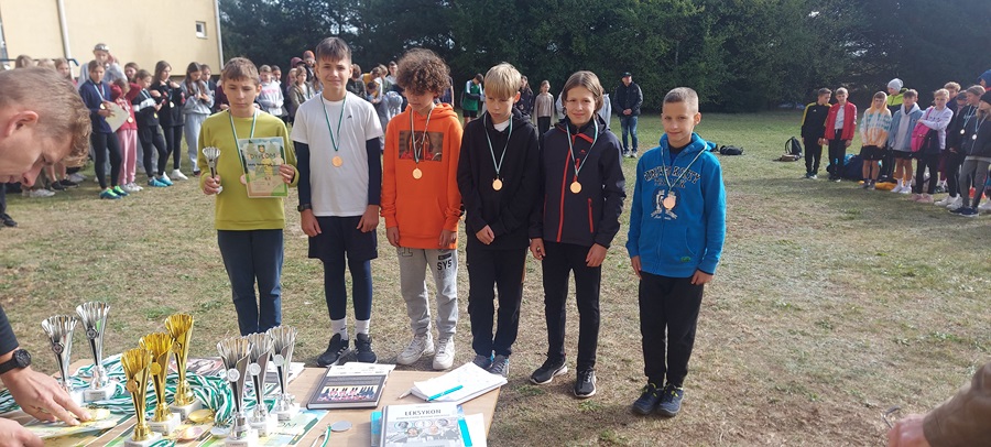 9.10.2023 r. w Trzciance odbyły się Powiatowe Drużynowe Biegi Przełajowe. W kategorii klas V-VI reprezentacja naszej szkoły w składzie: Antoni Dyl, Michał Rosiński, Michał Iciński, Mateusz Piaściński, Maciej Skibiński i Mikołaj Rydzewski zajęła III miejsce. Wszystkim serdecznie gratulujemy.