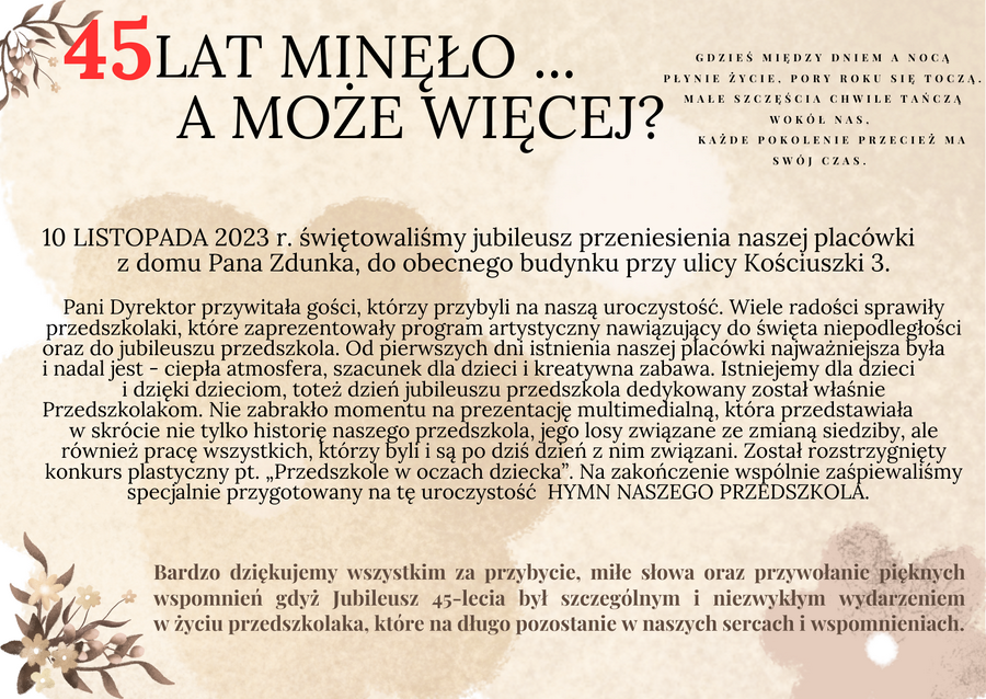 Strona główna Przedszkole Samorządowe w... Jubileusz 45-lecia Przedszkola