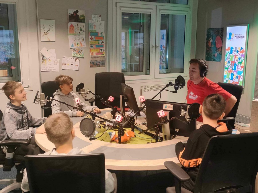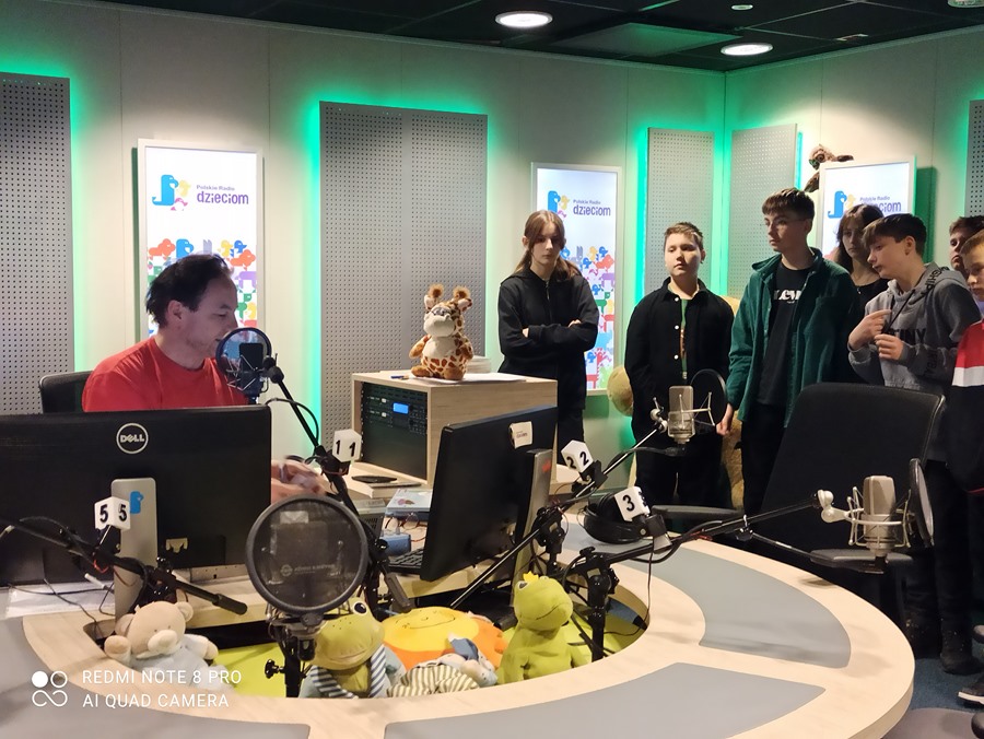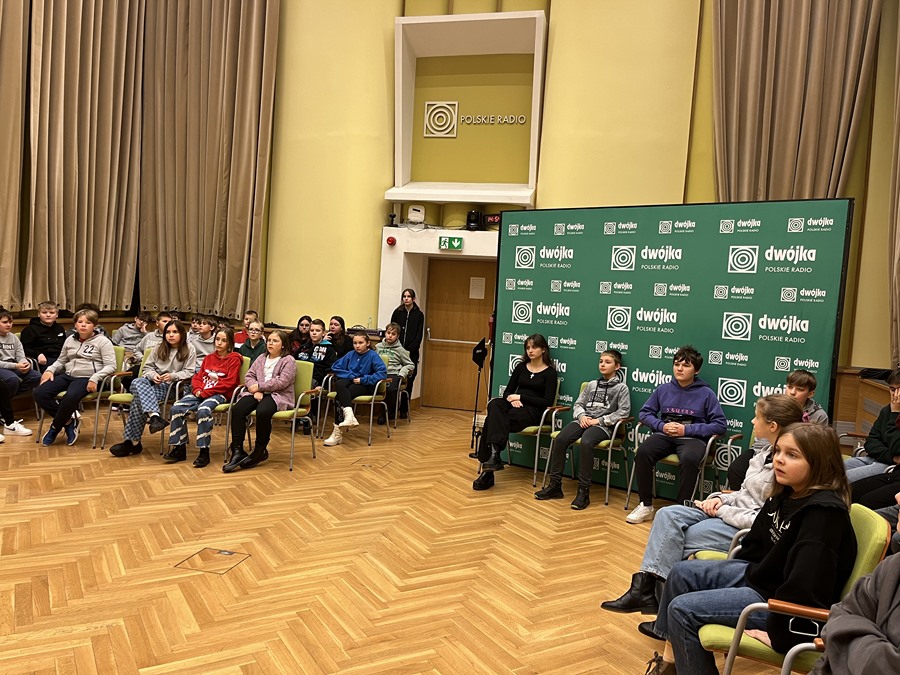 Następnie uczestnicy wycieczki udali się do gmachu Polskiego Radia. Pani Justyna Majchrzak, prowadząca Czwórki, opowiedziała nam o historii, sekretach i magii radia. Mieliśmy okazję obserwować realizację audycji „na żywo” w studiach Czwórki i Polskiego Radia Dzieciom, odwiedziliśmy również studia nagraniowe. Nasi uczniowie wystąpili w nadawanej na żywo audycji radiowej Polskiego Radia Dzieciom. Było to niezapomniane, wspaniałe doświadczenie!