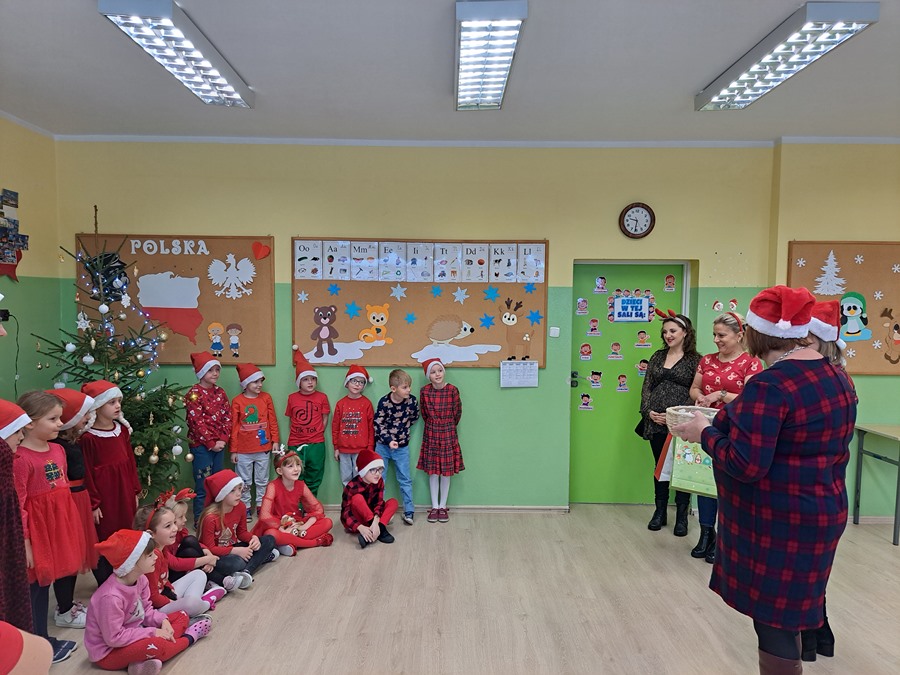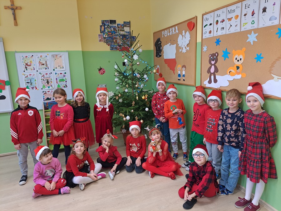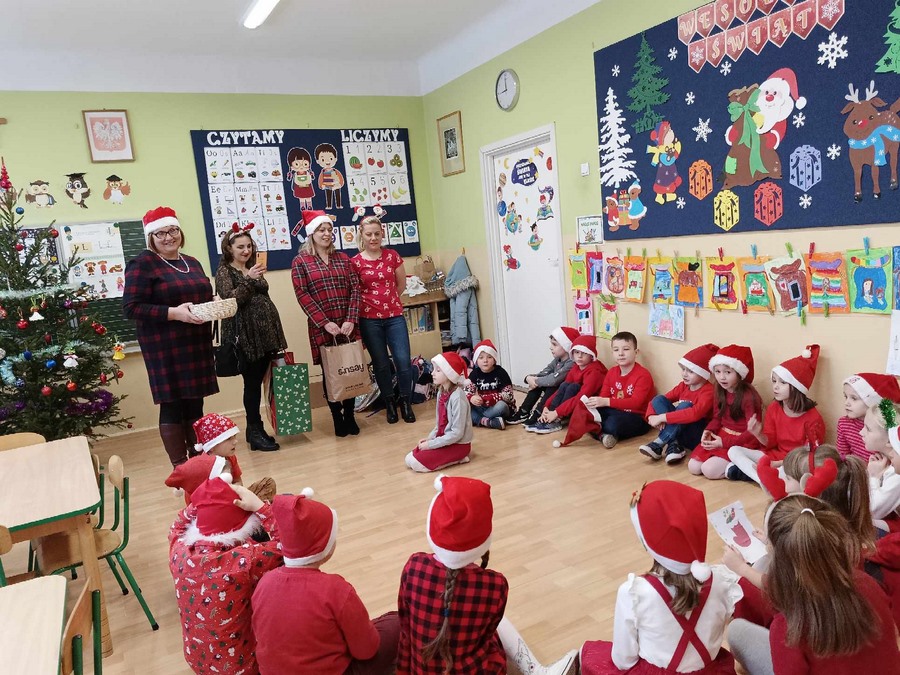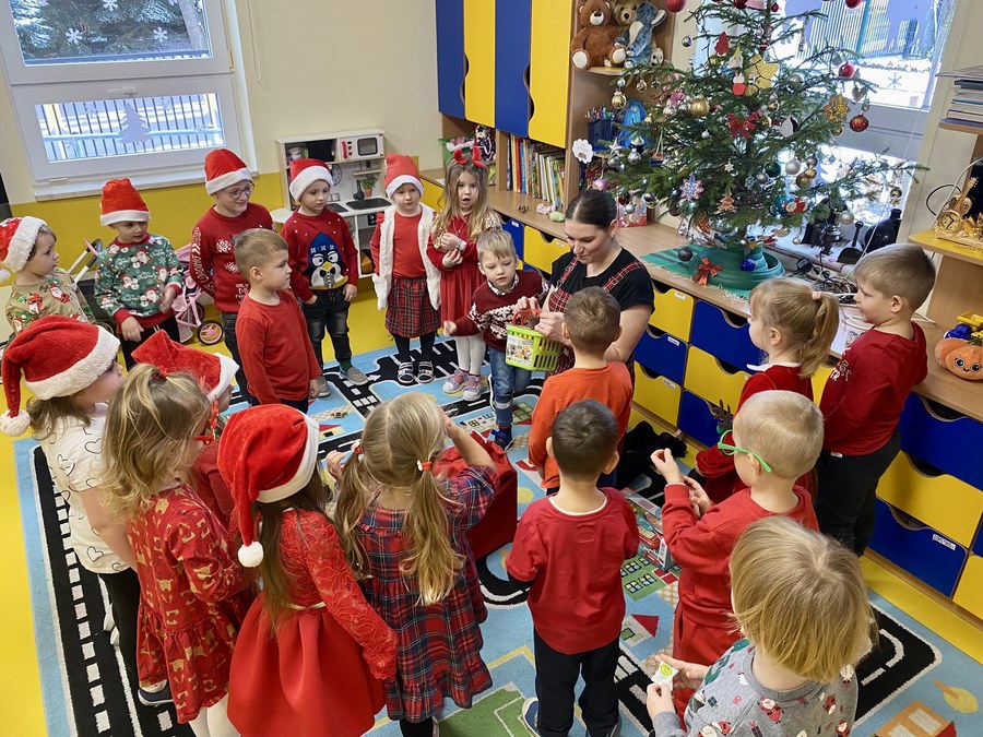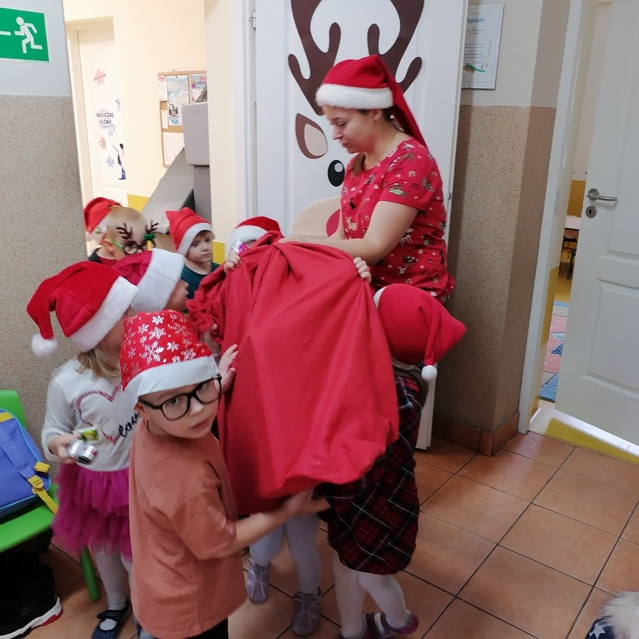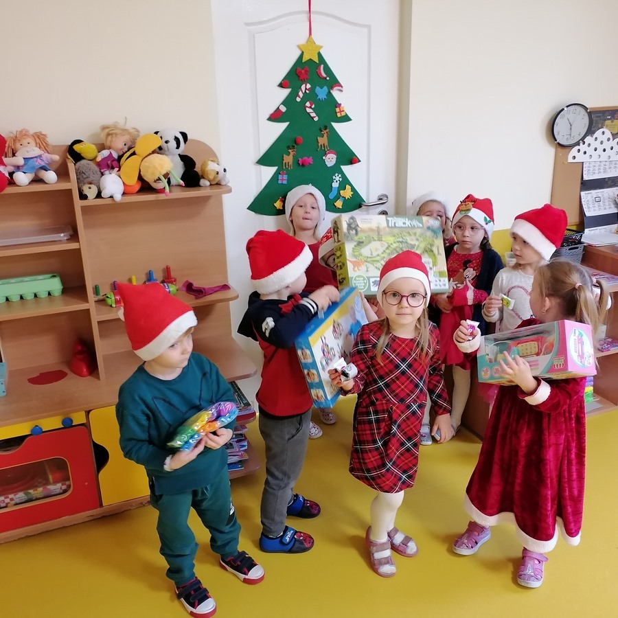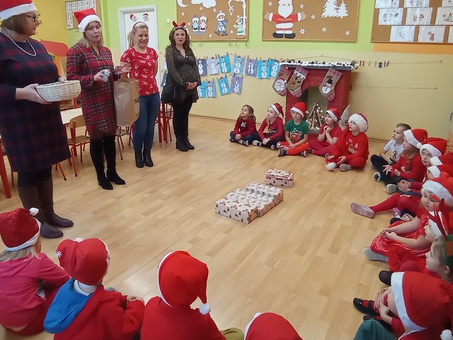 Zgodnie z tradycją 6 grudnia uroczyście obchodziliśmy w przedszkolu mikołajkowe święto. W dniu Mikołajek nasze przedszkolaki zamieniły się w pomocników Mikołaja i przyszły do przedszkola w czerwonych czapeczkach. Już od rana zastanawiały się czy Mikołaj odwiedzi ich salę i czy przyniesie prezenty. W tym dniu nie mogło zabraknąć prezentów, które przyniosły pomocnice Mikołaja, uśmiechów na twarzach wszystkich dzieci. W oczekiwaniu na prezenty, przedszkolaki brały udział w świątecznych tańcach i pląsach. Śpiewały piosenki o tematyce świątecznej.