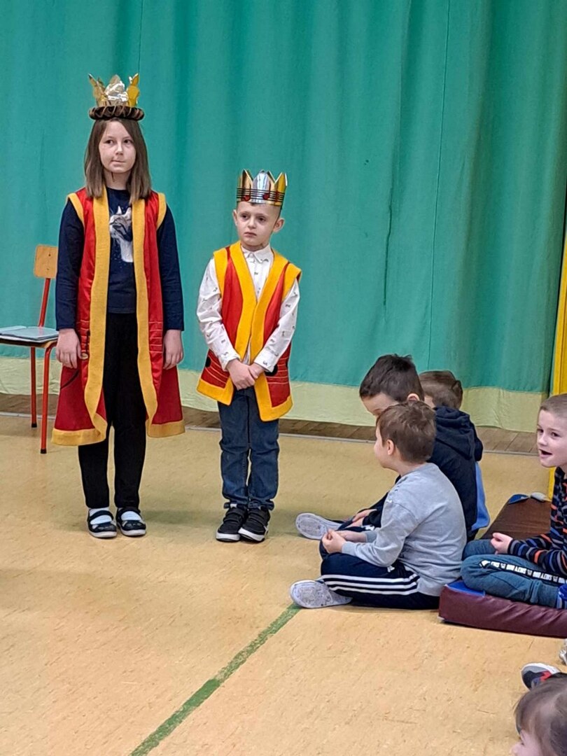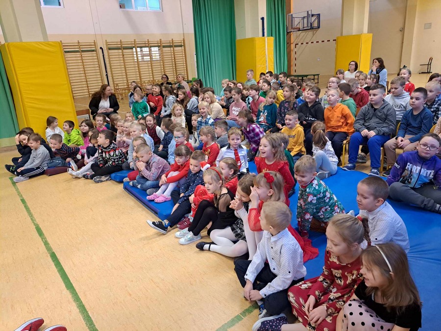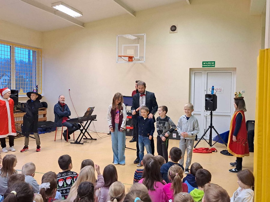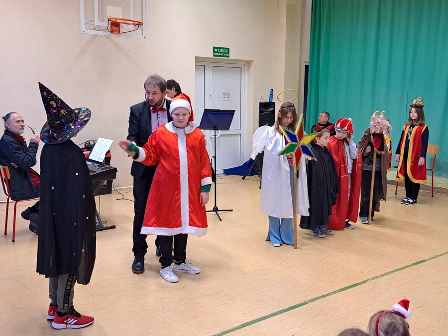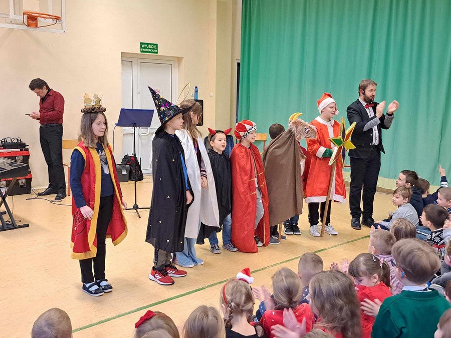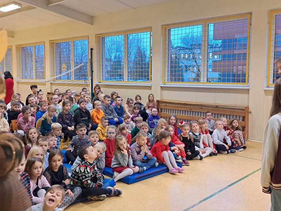 Agencja Artystyczna MAT 20 grudnia 2023 r. zabrała nas w świat bożonarodzeniowych tradycji, wprowadzając nas w świąteczny nastrój. Przypomniała czym są kolędy i pastorałki. Wspólnie śpiewaliśmy pieśni związane z narodzeniem Chrystusa np. międzynarodową kolędę „Cicha noc” oraz jedną z najstarszych polskich kolęd „Przybieżeli do Betlejem pasterze”. Dzieci wcieliły się w postać anioła, króla Heroda, turonia i diabła by zaprezentować nam stary zwyczaj – kolędowania .