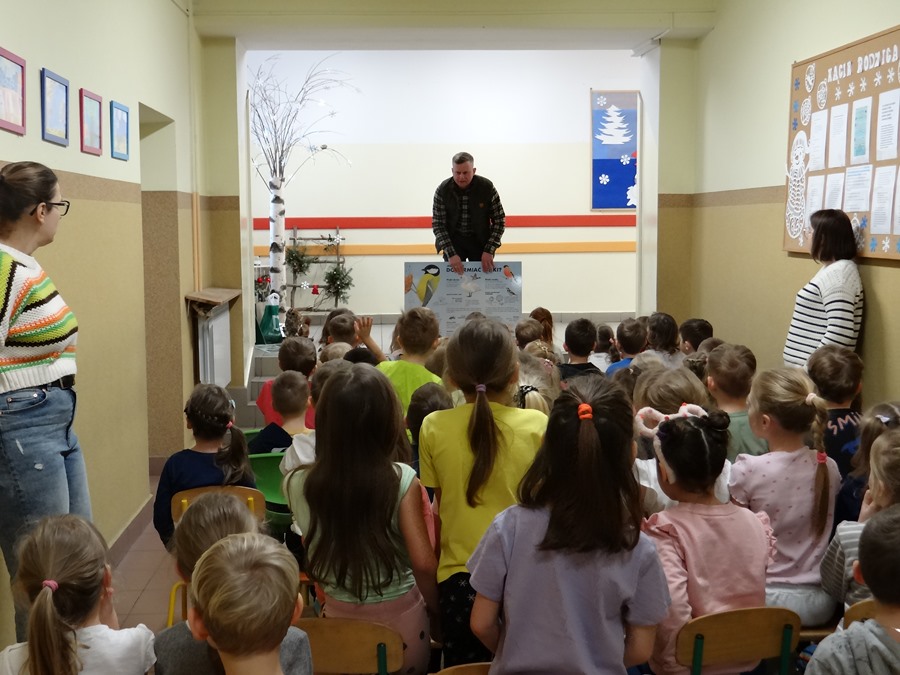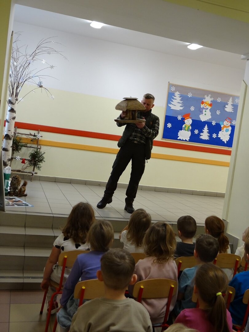 Zima to piękna pora roku, również to czas kiedy leśne zwierzęta i ptaki potrzebują pomocy ze strony człowieka. Niektóre zwierzęta śpią, inne dzięki zgromadzonym zapasom mogą przetrwać tę porę roku. Część ptaków odleciała do ciepłych krajów, ale niektóre są z nami. Kilka porad jak dokarmiać ptaki udzielił przedszkolakom Pan Krzysztof Grzybowski - podleśniczy, pracownik Nadleśnictwa Wyszków.