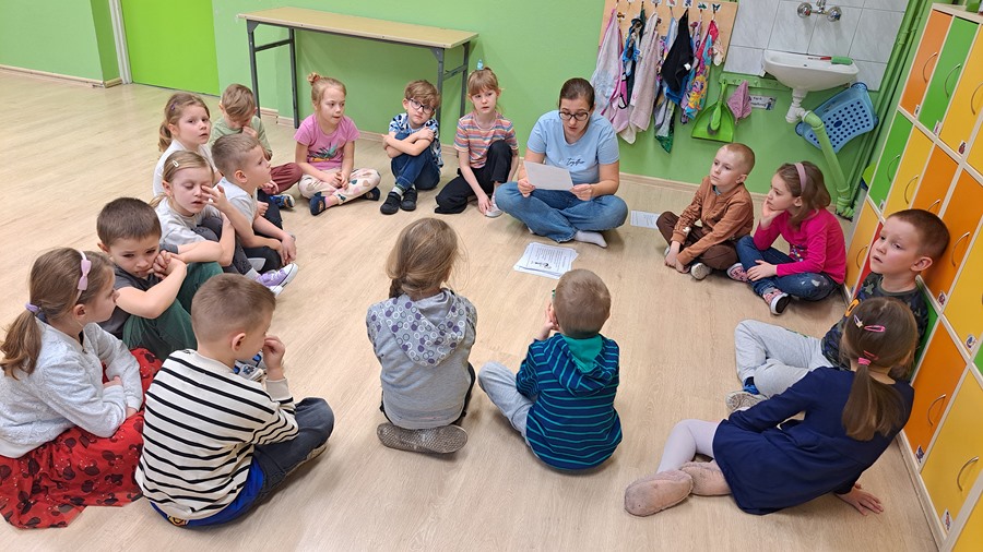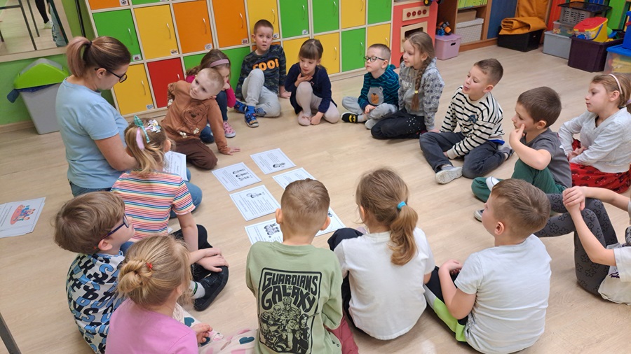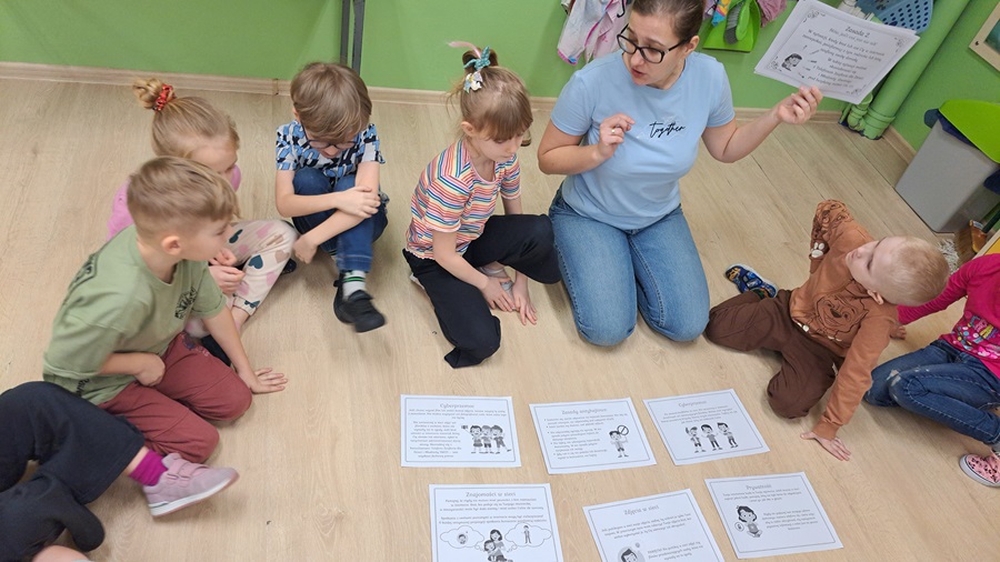 Przedszkolaki podczas zajęć edukacyjnych poznały zasady zdrowego korzystania z elektroniki. Dzięki zabawom dzieci dowiedziały się jak bezpiecznie korzystać i wybierać gry oraz bajki dostosowane do ich wieku.