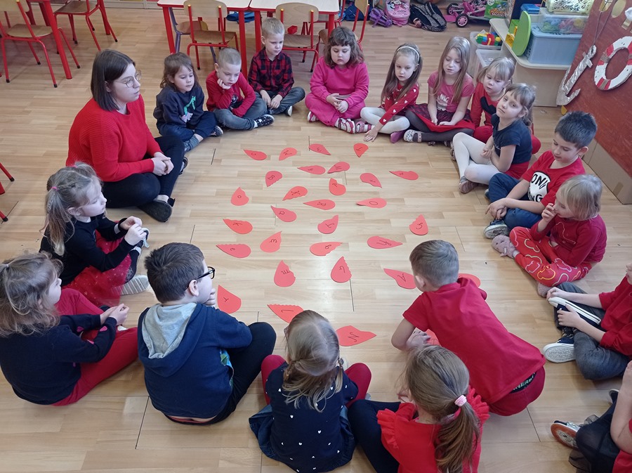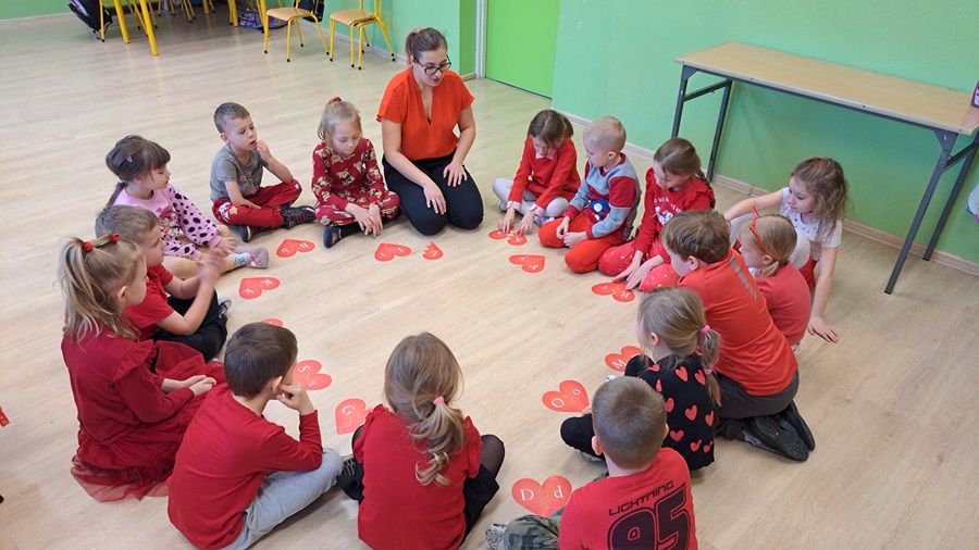 W tym dniu dzieci ubrały się na czerwono, a dzień przepełniony był atrakcjami oraz pogadankami na temat znaczenia miłości i przyjaźni w naszym życiu.