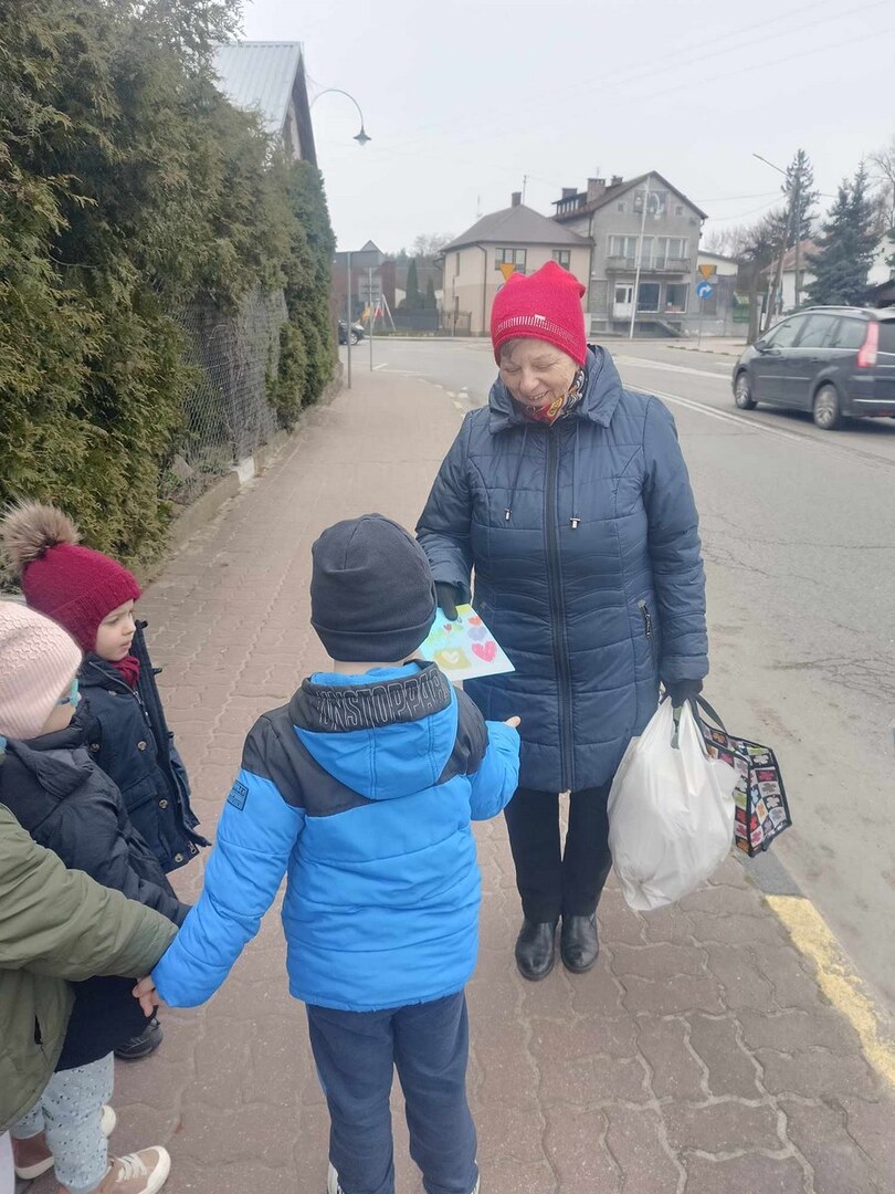 Od dzieci dla… pań. Przedszkole zorganizowało akcję „Kartka na Dzień Kobiet”. Wszystko zaczęło się od konkursu plastycznego dzięki któremu do naszej placówki wpłynęło 40 przepięknych prac. Następnie, podczas codziennego spaceru nasze dzielne przedszkolaki wręczały upominki wszystkim mijanym Paniom, pracownikom sklepów, kwiaciarni. Zawitały również do apteki, ośrodka zdrowia, gabinetu weterynaryjnego, banku, szkoły podstawowej oraz urzędu gminy. Chcieliśmy pokazać, że 8 Marca może trwać cały rok. Dzięki naszej akcji, mogłyśmy podarować uśmiech ogromnemu gronu cudownych Kobiet.