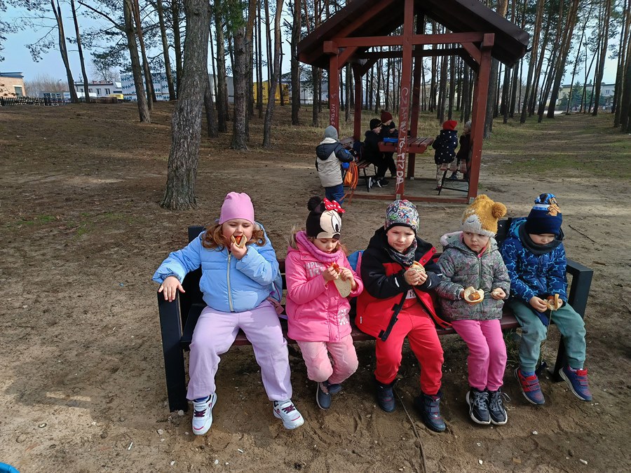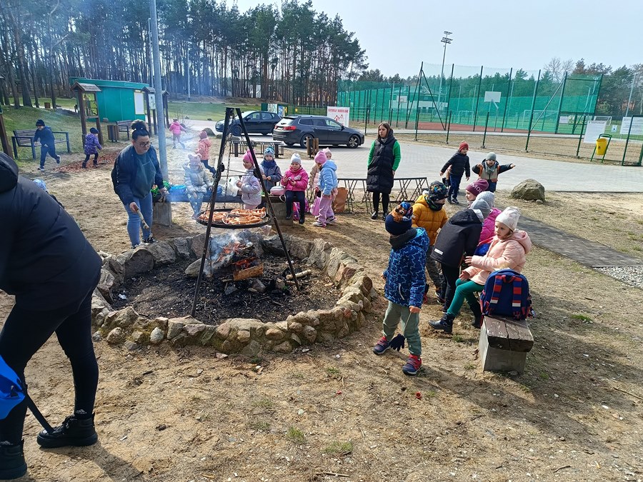 Następnie na dzieci czekały pyszne kiełbaski z ogniska. Przedszkolaki miały też okazję pobawić się w lesie i poobcować z przyrodą.