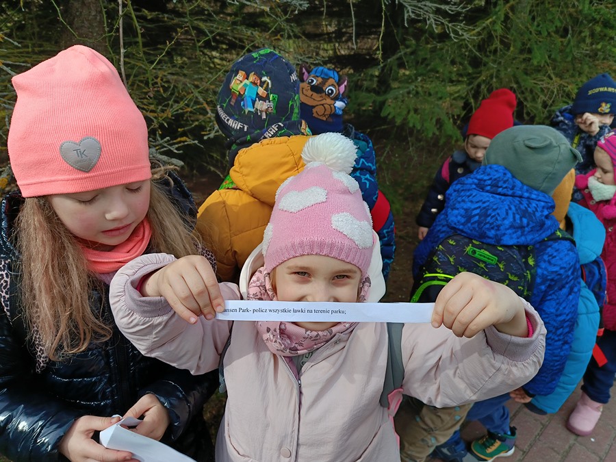 Grupy "Kangurki" i "Tygryski" miały okazję wziąć udział w wiosennych podchodach. Przygotowane zagadki wcale nie sprawiły dzieciom trudności. Nie zabrakło również zadań związanych z Naszym regionem.