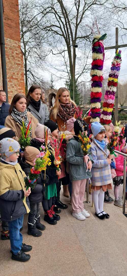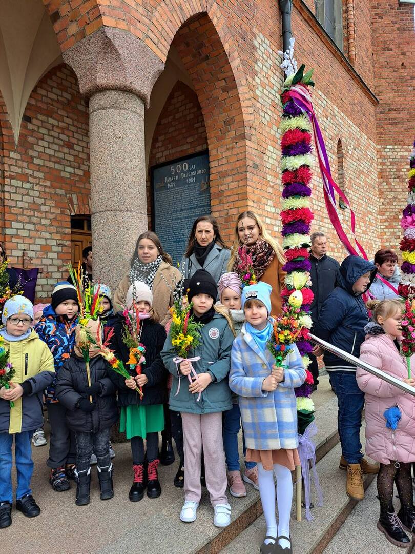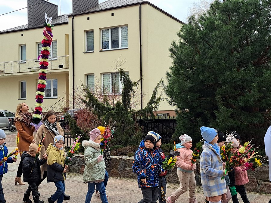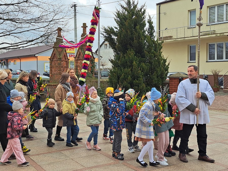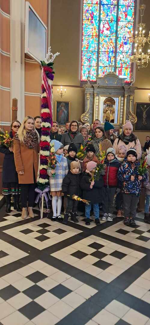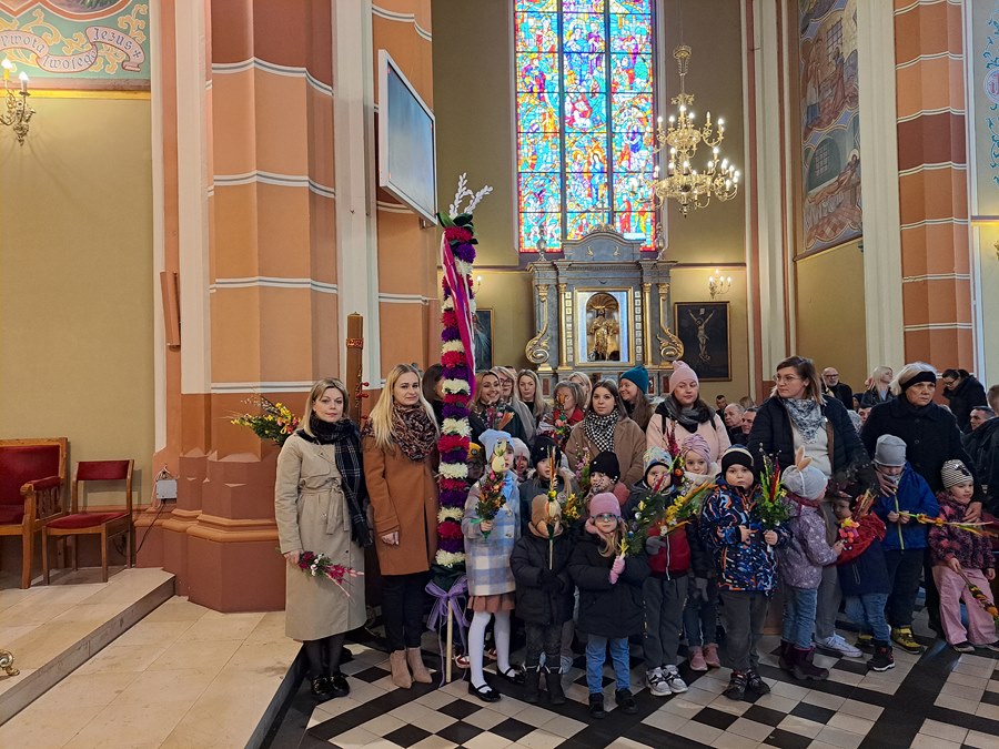 Od kilku lat Nasze Przedszkole przygotowuje okazałą i barwną palmę, zdobioną kwiatami, bukszpanem, gałązkami, wstążkami i symbolami religijnymi. Podobnie było i w tym roku. W tej religijnej uroczystości wzięła udział społeczność przedszkola. Nasza Palma, z dumą prezentowała się w kościele podczas Mszy św.