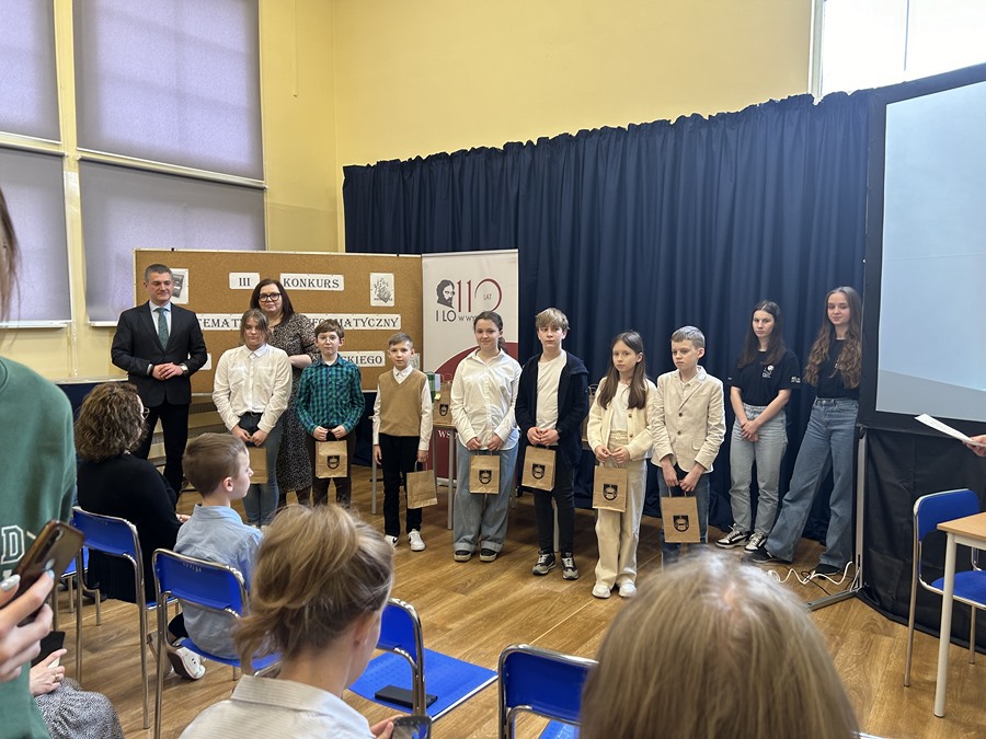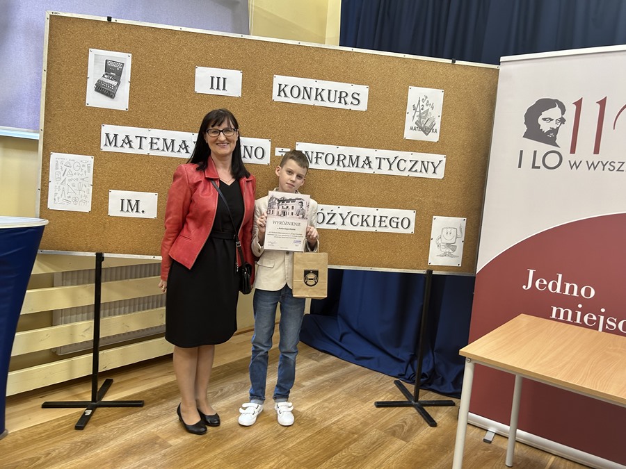Miło nam poinformować, że w III Konkursie Matematyczno-Informatycznym im. Jerzego Różyckiego zorganizowanym przez I LO im. C.K. Norwida w Wyszkowie wyróżnienie zdobył Antoni Dziel z klasy Va. Konkurs odbył się pod patronatem Starosty Powiatu Wyszkowskiego.