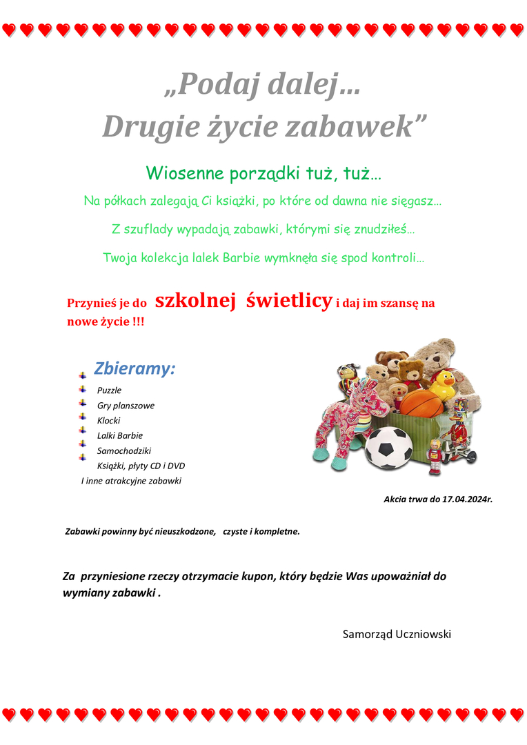 "Podaj dalej... Drugie życie zabawek" - akcja Samorządu Uczniowskiego