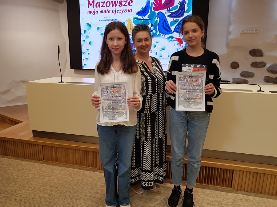 Miło nam poinformować, że w XXIII edycji konkursu „Mazowsze, moja mała ojczyzna” nagrodzono prace plastyczne naszych uczennic. W kategorii klas 4-6 należało wykonać projekt stroju „Jestem z Mazowsza – to widać!