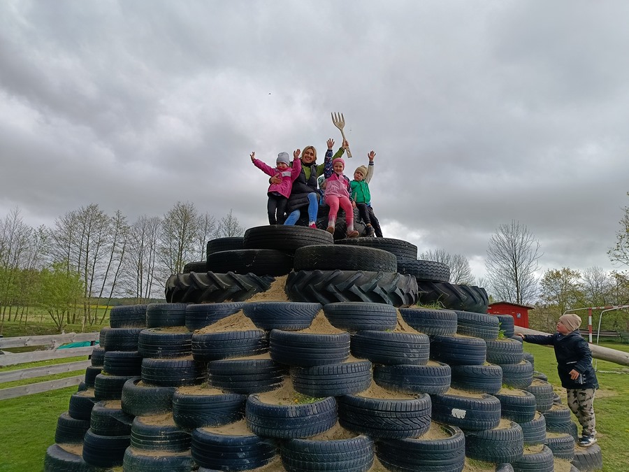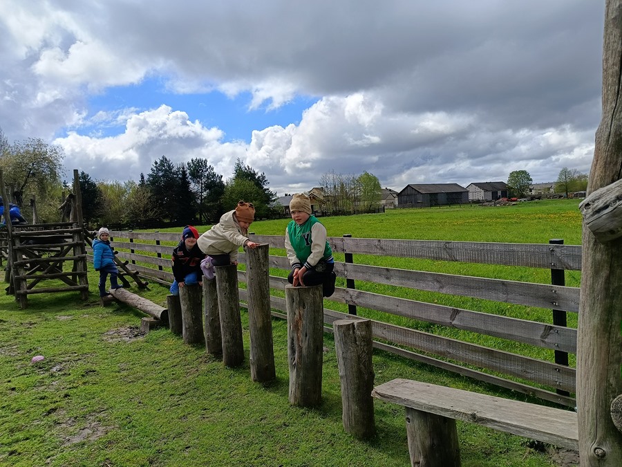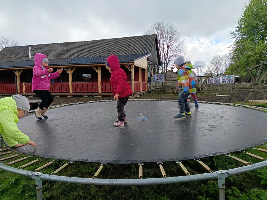 Celem ich podróży było gospodarstwo agroturystyczne w Wielgolesie. Pierwszym punktem wycieczki były warsztaty, podczas których dzieci miały możliwość zrobić własny zakwas na żur, posiać rzeżuchę oraz wyhodować kiełki lucerny. Następnie dzieciaki dekorowały ciasteczka, które szybko znikały ze stołu. Dzieci miały również okazję porozmawiać z przyrodnikiem, który opowiedział nam o narodzinach w świecie leśnych zwierząt oraz ich zwyczajach. Nie zabrakło też atrakcji jakimi było szukanie jaj i kurczaków Najbardziej wyczekiwanym punktem programu były zabawy na placu zabaw, który swoją konstrukcją bardziej przypominał tor przeszkód. Dostępne konstrukcje zrobione głównie z desek, opon i łańcuchów były nie lada atrakcją dla przedszkolaków.