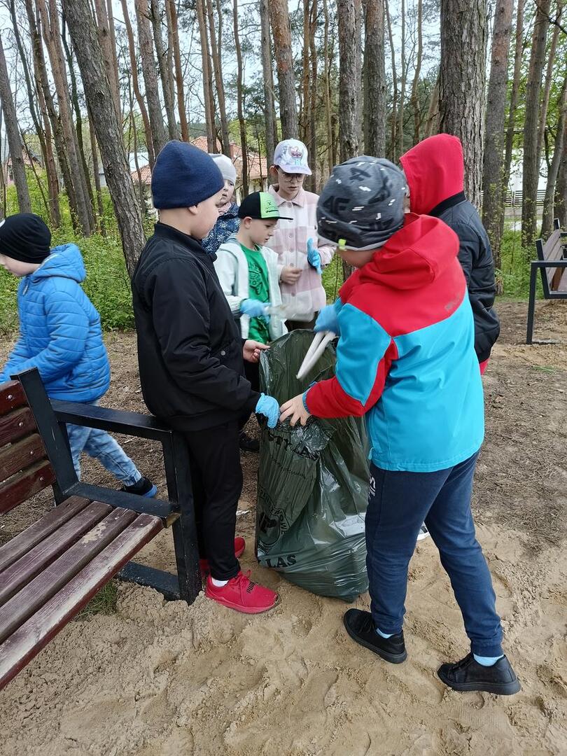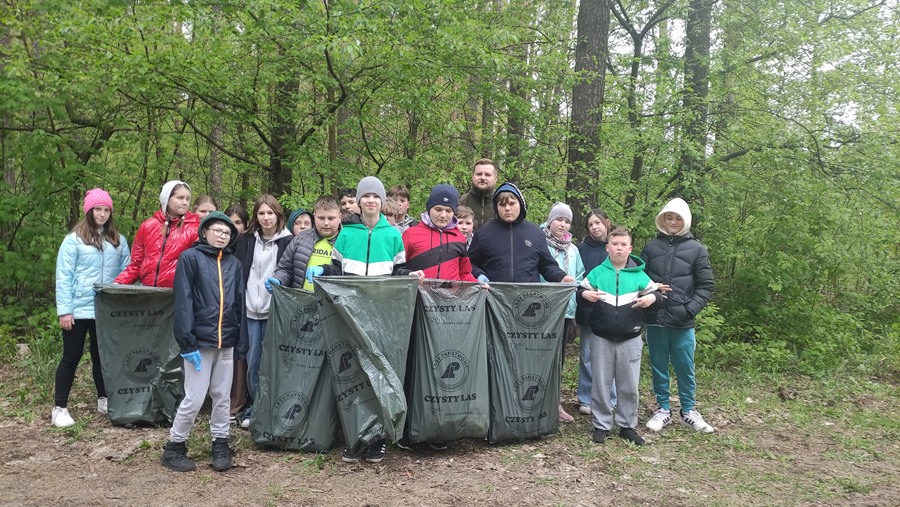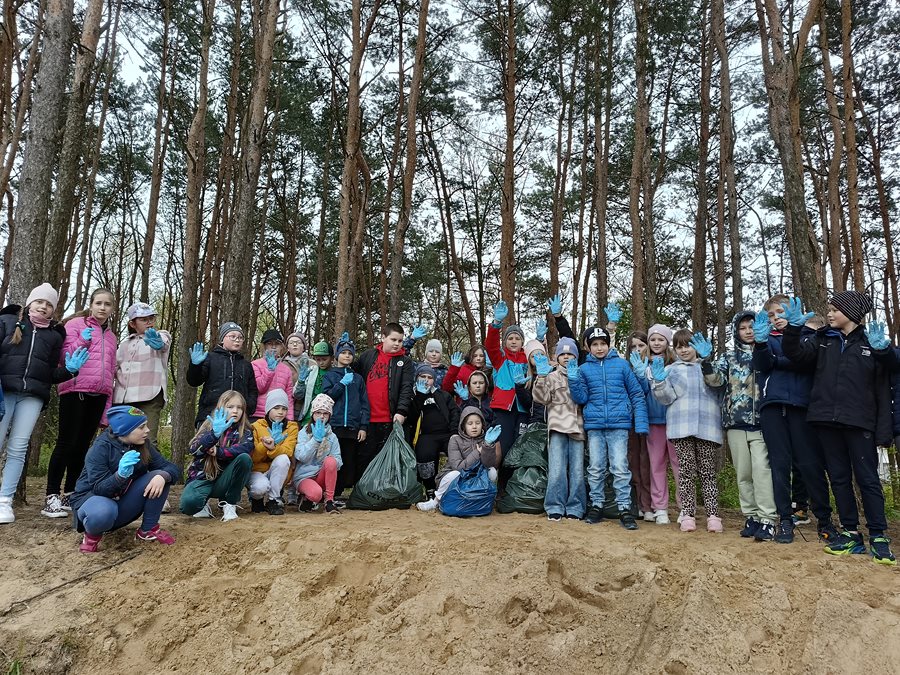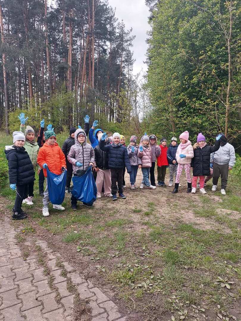Uczniowie klas młodszych wraz z wychowawcami uprzątnęli obszar w pobliżu szkoły. Starsi, wraz z przedstawicielem Nadleśnictwa Wyszków i opiekunami, oczyścili ze śmieci pobliski las.
