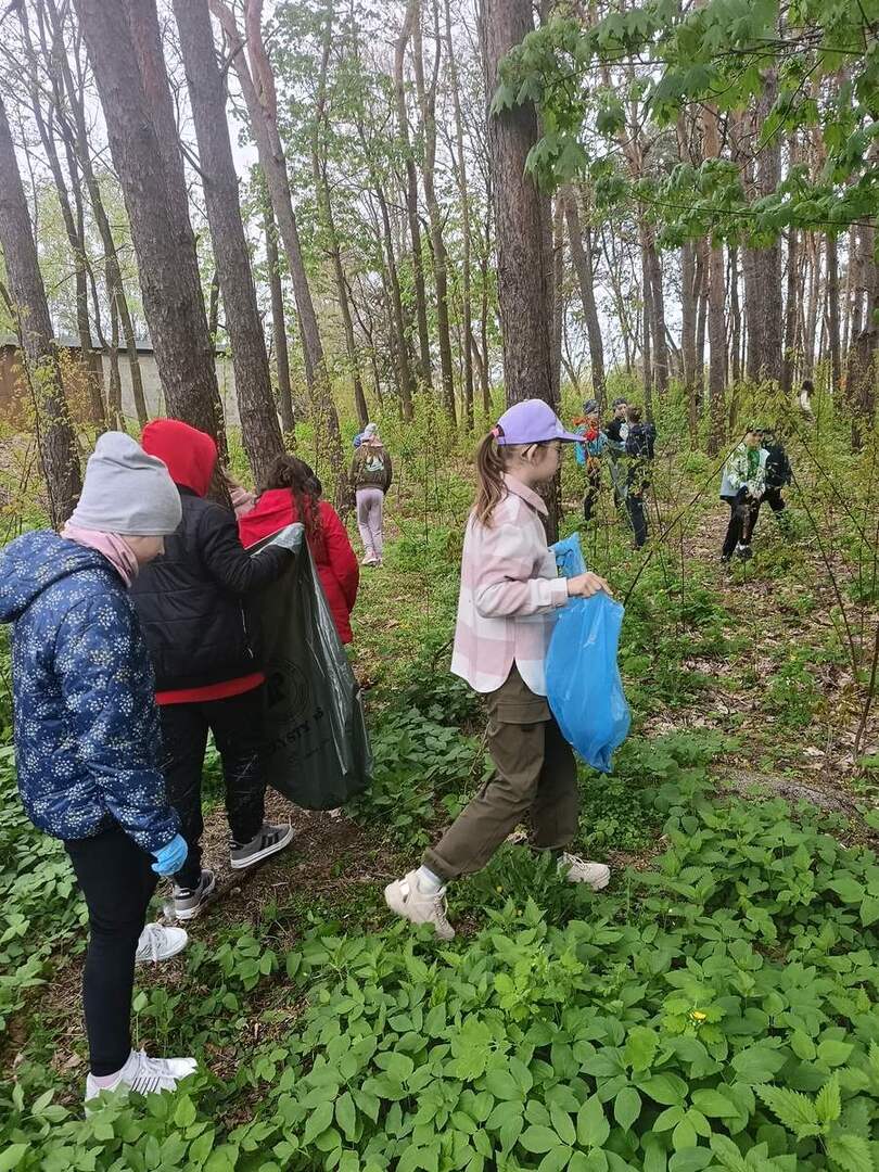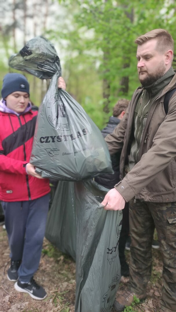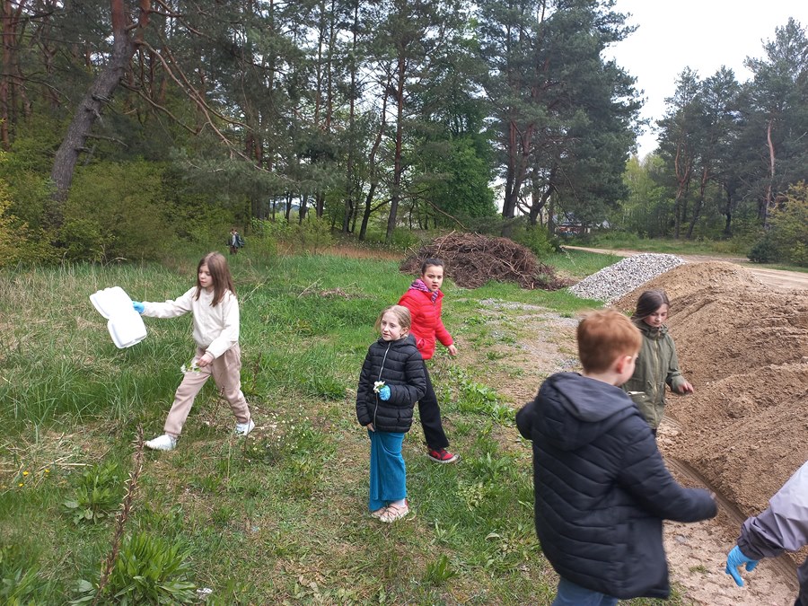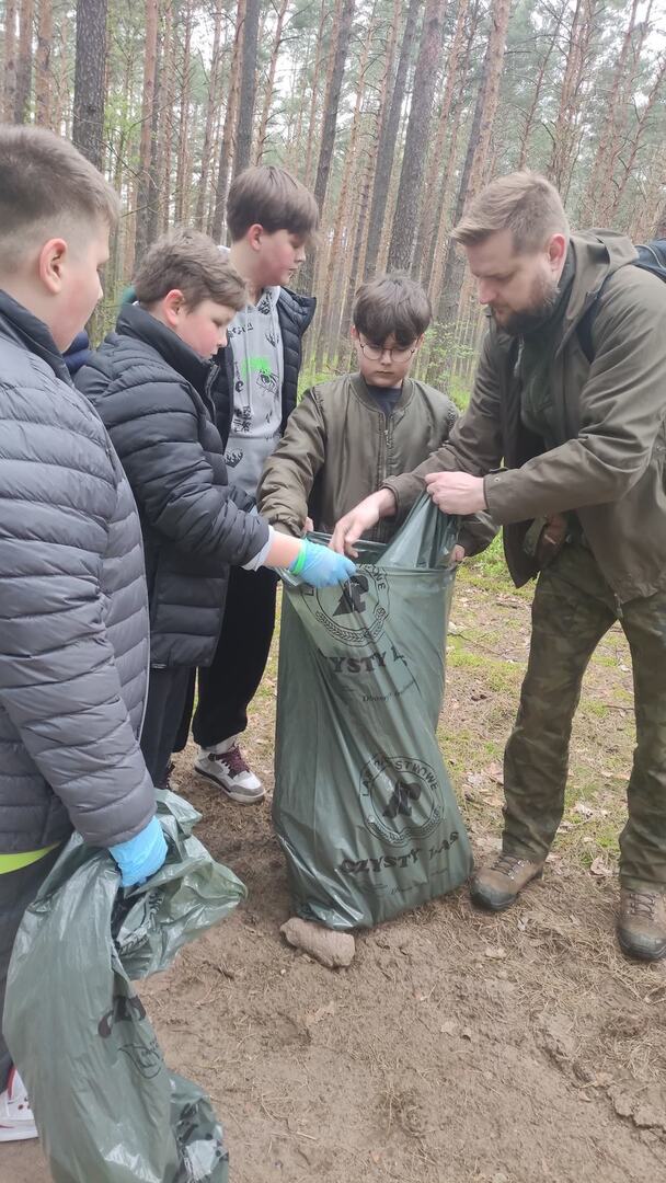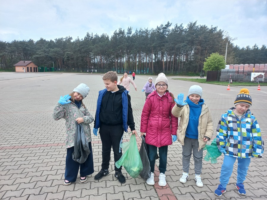 Uczniowie klas młodszych wraz z wychowawcami uprzątnęli obszar w pobliżu szkoły. Starsi, wraz z przedstawicielem Nadleśnictwa Wyszków i opiekunami, oczyścili ze śmieci pobliski las.