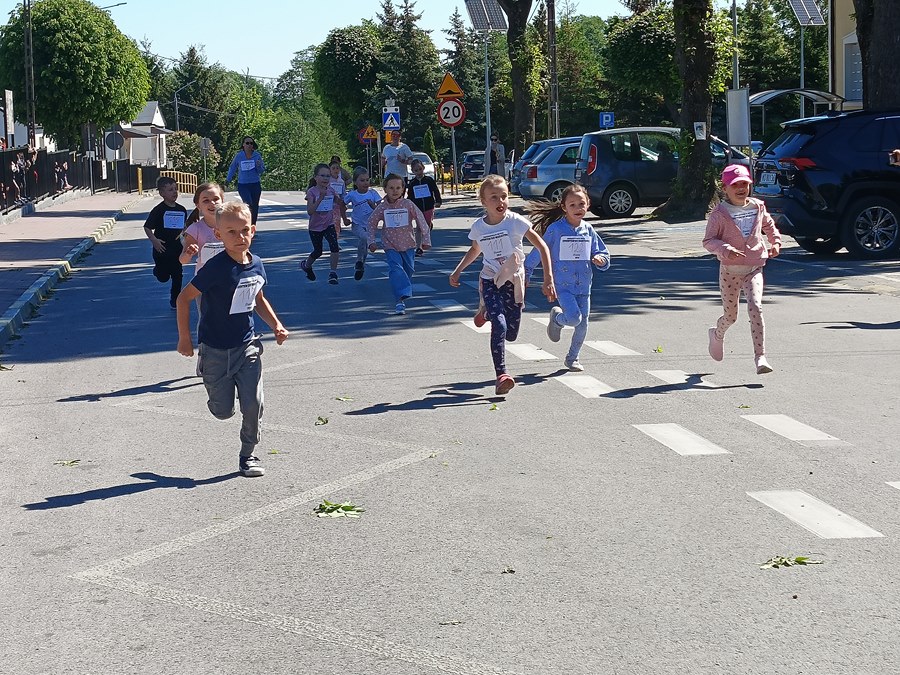 Impreza biegowa została przeprowadzona 17 maja 2024 r. o godzinie 10:00 na boisku szkolnym. Dystans został dostosowany do wieku i możliwości dzieci. Przed zawodami wszystkie grupy przedszkolne zjadły zdrowe śniadanie oraz otrzymały numer startowy. Przed bieganiem wszyscy uczestnicy wzięli udział we wspólnej rozgrzewce. Dzieci w skupieniu rozpoczęły bieg, starając się jak najszybciej dobiec do mety. Jednak w tym maratonie wszyscy byli zwycięzcami. Nie liczyło się miejsce, a pokonanie dystansu w miłej atmosferze. Mali maratończycy za swoje zmagania otrzymali dyplomy grupowe. Bieg był wielkim wydarzeniem dla przedszkolaków.