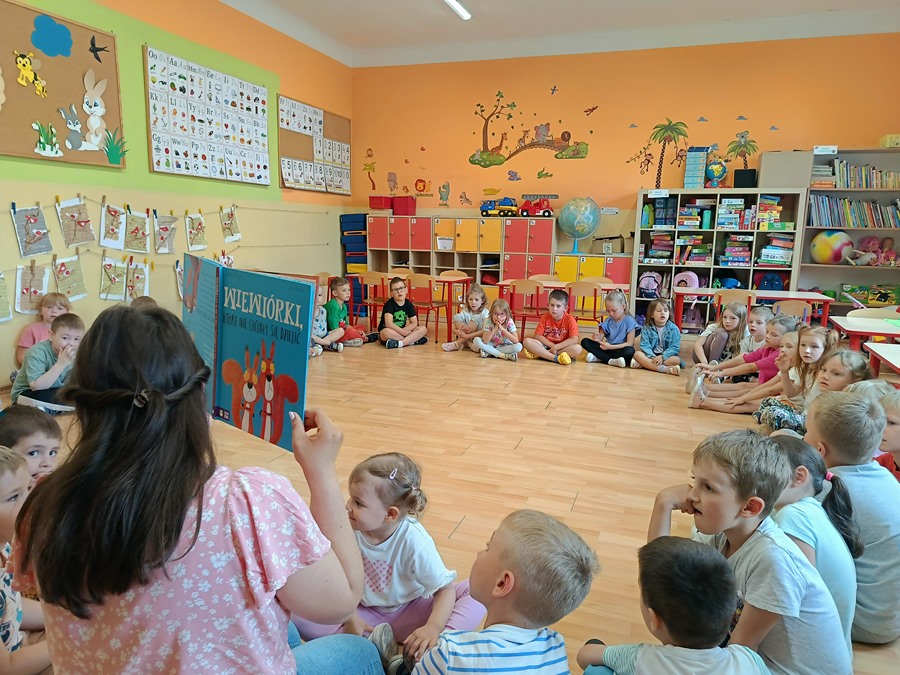 W ramach akcji Czytające przedszkole dzieci wysłuchały opowiadania o „Wiewiórkach, które nie chciały się dzielić” i spędziły miło czas z Panią Martą.