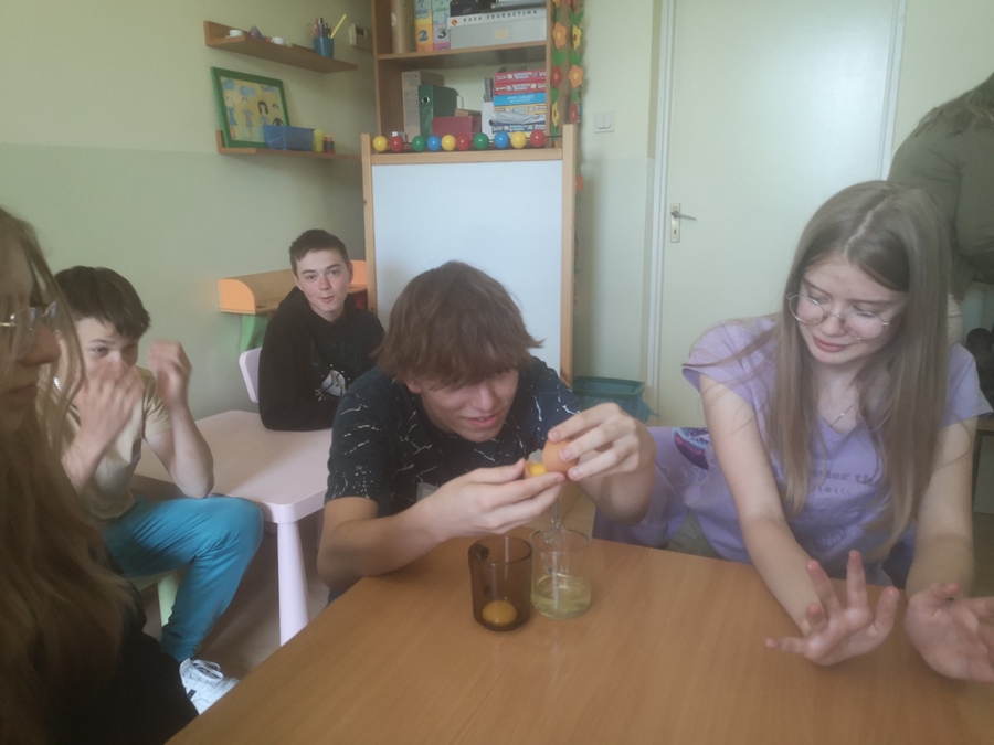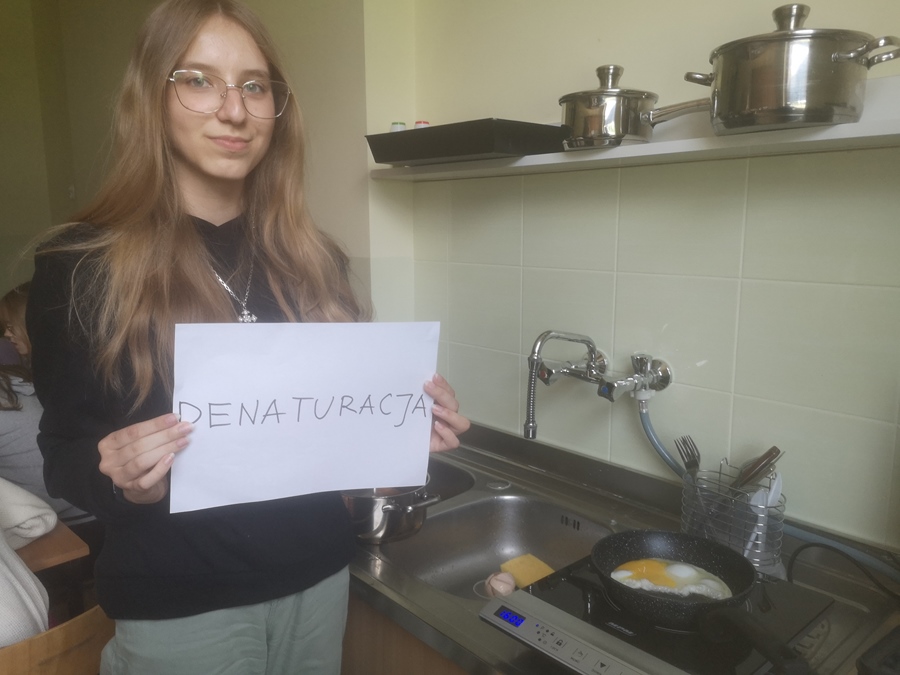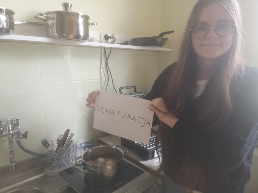 Na jednej z lekcji chemii uczniowie klasy VIII, eksperymentując za pomocą sprzętu Laboratorium Przyszłości, analizowali procesy, jakim ulegają białka. Badaliśmy zachodzenie efektu Tyndalla, proces koagulacji i denaturacji białka jaja kurzego. Nie obyło się też bez degustacji przygotowanego posiłku!
